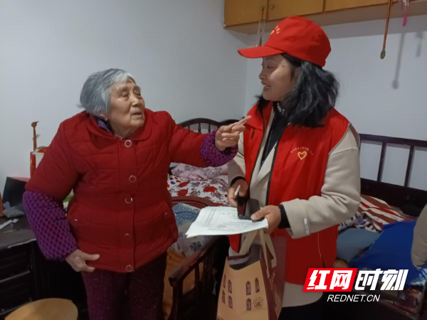 天剑社区党员志愿者走访慰问独居老人,提醒老人注意防寒保暖。