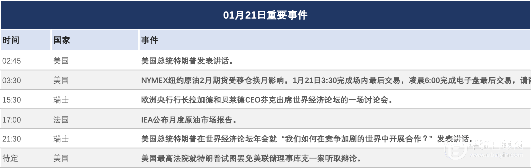 【华通白银网1月21日】•黄金价格首次突破4700美元/盎司,这一涨势受到避险需求的推动。 •美国对八个欧洲国家的新关税威胁加剧了贸易争端的担忧。 •由于预期全球经济将更强劲增长且美元走软,油价上涨了超1%。 黄金和白银价格继续其历史性的上涨趋势,这两种贵金属在周二均创下新高纪录。 黄金价格首次突破4700美元/盎司的关口,与此同时,避险需求持续上升。 另一方面,纽约商品交易所的白银价格达到了超95美元/盎司的历史新高。 与此同时,油价上涨了超过1%,因为这种大宗商品在市场对全球经济强劲增长的预期以及美元走软的背景下获得了支撑。 黄金价格大幅上涨 周二,黄金价格首次突破4700美元/盎司,这一涨势是由全球紧张局势加剧所推动的,这种局势促使人们纷纷寻求安全避风港。 在美国总统特朗普威胁要对八个欧洲国家征收关税之后,黄金白银价格大幅上涨,在新交易周伊始便创下了新的历史高位。 目前黄金的交易价格为4741.47美元/盎司,白银的交易价格为94.035美元/盎司。 德国商业银行的大宗商品分析师Carsten Fritsch在一份报告中表示:“美国总统特朗普对北约盟国的最新强硬举措很可能会进一步削弱市场参与者对美元作为避险货币的信心,并促使他们转向其他避险资产。” 黄金价格经历了大幅上涨,2026年头20天内上涨了9.6%,自特朗普第二任期开始(即一年前)以来更是上涨了70%。 这种前所未有的上涨主要是由不断加剧的地缘政治紧张局势所推动,同时对货币政策放宽的预期也为其提供了强劲的助力。 此外,央行的大量采购以及大量资金流入交易所交易基金(ETF)也对这一增长起到了至关重要的推动作用。 黄金被视为终极避险资产,因其在很大程度上不受政治家和中央银行干预的影响。德国商业银行大宗商品分析师Carsten Fritsch指出,黄金ETF资金的强劲流入便是这一特性的明证。 据世界黄金协会的数据,去年交易所交易基金的资金流入量超过了800吨。 这标志着年度资金流入量达到有记录以来的第二高位,仅低于2020年这一峰值年份。2020年,全球各国央行纷纷大幅放宽货币政策,以应对新冠疫情的影响。 上周黄金交易所交易基金的资金流入出现了回升,而此前整个2026年开局较为低迷。 与此同时,得益于其结构性市场缺口以及在美国被视为关键矿产的地位,银价在2025年大幅上涨了147%。 今年以来,白银价格持续上涨,迄今已上涨了近34%。 油价上涨1% 油价的上涨得益于对全球经济强劲增长的预期以及美元走软,同时投资者还密切关注着美国总统特朗普针对反对其购买格陵兰岛计划的欧洲国家所发出的关税威胁。 在特朗普发表相关声明之后,新一轮贸易战的威胁在周末进一步加剧了。 特朗普声称,从2月1日起,他将对来自以下欧洲国家的进口商品加征10%的关税,即丹麦、挪威、瑞典、法国、德国、荷兰、芬兰和英国。 这项税收计划于6月1日起提高至25%,除非就格陵兰岛问题达成一致意见。 周二,欧盟委员会主席乌尔苏拉·冯德莱恩宣布,欧盟的行政机构正在制定一套旨在保障北极地区安全的方案。 中国原油进口量的增加也推动了周二的油价上涨。 12月份,中国的原油加工量达到6246万吨,折合平均日加工量为1473万桶。 尽管略低于上个月的水平,但加工量仍显著超过了去年的水平。 2025年,中国的炼油厂加工了创纪录的7.376亿吨原油,相当于每天1477万桶。 尽管原油加工量如此之大,但中国的原油进口量仍始终超过炼油厂的需求,无论是从12月的情况来看,还是全年而言都是如此。 截至撰写本文时,西德克萨斯中质原油的价格为60.12美元/桶,上涨了1.3%;而布伦特原油的价格则上涨了1.2%,达到64.71美元/桶。 David Morrison称:“目前价格似乎正在趋于稳定,已从一周前触及的近十周高点大幅回落。” 截止北京时间09:40,华通现货白银定盘价报22850元。 本交易日重点关注: