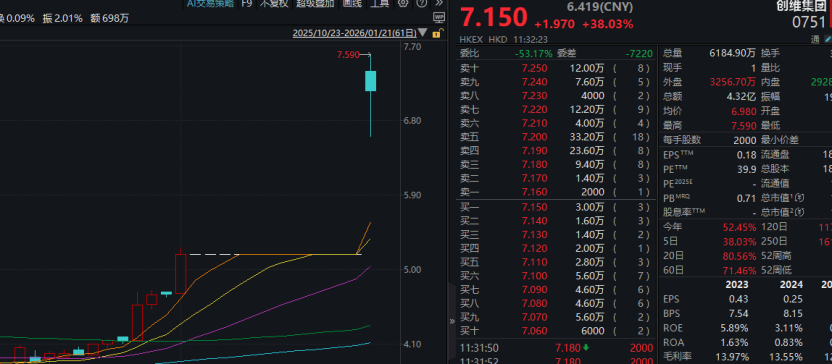 招股资料显示,爱舍伦长期专注于医疗健康事业,主要从事应用在专业的康复护理与医疗防护领域的一次性医用耗材的研发、生产和销售,通过 ODM/OEM 等方式为国际知名医疗器械品牌厂商提供相关产品。公司在长期发展过程中立足专业的康复护理与医疗防护领域,紧紧围绕医疗工作者和患者的专业需求,以康复护理、手术感控产品为核心,不断向消毒清洁、家庭防护、急救防护等领域拓展,持续开发新产品,拓展产品线的深度和广度。 招股资料称,目前公司产品种类已经涵盖康复护理产品、手术感控产品两个核心品类,可为客户提供医用护理垫、医用冰袋、手术衣、手术铺单、手术组合包等各种医用敷料产品。 港股创维集团一度大涨逾40% 港股市场今天上午整体低位震荡。恒生指数成份股中,安踏体育、申洲国际、网易-S、李宁等股票跌幅居前;中芯国际、百度集团-SW等领涨。 港股通标的股中,创维集团大涨,盘中涨幅超过40%。