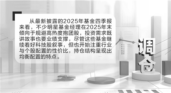证券时报记者 安仲文 随着2025年四季报的披露,多位知名基金经理的调仓路径浮出水面。 证券时报记者注意到,不少明星基金经理在2025年末倾向于规避高热度抱团股,投资需求既讲故事也要业绩支撑,尽管这些基金继续看好科技股叙事,但也开始注重行业与个股配置的性价比,持仓结构呈现出均衡配置的特点。 最新披露的2025年四季报曝光了一批知名基金经理的持仓新动向。 证券时报记者注意到,鹏华基金权益投资三部总经理闫思倩在管理次新基金鹏华制造升级时,更加注重个股的业绩确定性。该基金成立于2025年10月中旬,建仓期选择切入“老树开新花”的行业,那些传统业务即可贡献丰厚利润的汽车零部件公司成为投资重点,如宁波华翔、震裕科技等,这些标的也受益于人形机器人产业链的延伸。这一策略与其管理的其他老基金形成鲜明差异,后者更聚焦AI、半导体等高景气赛道。这种差异化配置,既考虑了次新基金对净值波动的敏感性,也体现既要科技新故事,又要业绩支撑的优选逻辑。 同样采取优选配置策略的还有平安基金权益投资总监神爱前。他在去年末并未押注热度已较高的半导体,而是通过自下而上的个股精选,构建多元组合。其管理的平安策略先锋基金重仓股涵盖电子材料、储能、电解铝、游戏机等多个领域,有效规避单一行业波动风险。 长城基金国际业务部副总经理、基金经理曲少杰则通过赛道细分挖掘超额收益。他管理的长城全球新能源汽车基金在2025年末减持港股仓位,将重心转向具有全球竞争力的科技龙头,包括谷歌、台积电、特斯拉等核心企业。在新能源汽车赛道,曲少杰摒弃了竞争激烈、价格下行压力较大的整车环节,转而捕捉“卖铲子”的上游投资机会,其前十大重仓股中有9只聚焦汽车电子与汽车半导体业务,精准把握了行业中需求旺盛、议价能力强的核心环节。这一策略既规避了同质化竞争的红海,又锁定了产业链高价值环节的成长红利。 尽管配置策略各异,但多位基金经理对科技主线的长期价值达成共识。AI、人形机器人、智能驾驶等方向被视为未来几年的核心增长极。 闫思倩判断,当前正处于科技爆发的奇点时刻,AI智能有望实现超越人类的认知与执行能力,机器人则将完成各类精密操作,推动生产力迈上新台阶。在这一趋势下,人口红利的重要性逐渐下降,资源与能源将成为终极竞争优势,而中国在科技、能源方向的领先优势有望持续强化。她明确表示,将持续看好AI相关、机器人、无人驾驶等科技成长方向,以及新能源与资源板块,其中2026年有望成为机器人场景落地、产品成熟与终端放量的关键年份,其应用将逐步渗透至工厂、办公、消费、家庭等多元场景。 曲少杰则认为,智能驾驶、机器人、AI芯片等赛道具有高度产业关联性,智能驾驶产业链龙头企业往往同时具备人工智能与机器人领域的核心竞争力,将长期受益于科技发展红利。当前美国正处于科技创新强周期,大模型、智能机器人、智能驾驶等技术的应用场景持续拓展,带动GPU、ASIC等高性能计算芯片的算力需求爆发,为相关科技龙头企业带来持续增长动力。 前海开源沪港深乐享生活基金经理魏淳聚焦AI基础设施的细分机会,她认为光通信和液冷领域具备较高的潜在超额回报,随着Scale-up网络从柜内互联向跨机柜互联拓展,铜传输的距离限制将推动光通信技术的广泛应用,NPO/CPO等形式有望在2026年实现规模化落地。由于Scale-up网络带宽数倍于Scale-out网络,这一技术趋势将显著提升光通信在AI基础设施投资中的占比,推动行业盈利预期与估值水平双升,而1.6T光传输与CPO技术的协同突破,将进一步筑牢AI算力的底层支撑。 |
