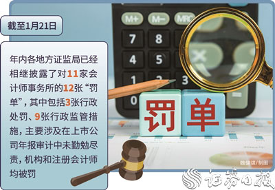今年年初,中国证监会召开资本市场财务造假综合惩防体系跨部门工作推进座谈会时提出,强化对中介机构的责任追究。截至1月21日,年内各地方证监局已经相继披露了对11家会计师事务所的12张“罚单”,其中包括3张行政处罚、9张行政监管措施,主要涉及在上市公司年报审计中未勤勉尽责,机构和注册会计师均被罚。 中央财经大学资本市场监管与改革研究中心副主任李晓在接受《证券日报》记者采访时表示,开年以来,会计师事务所的“罚单”密集落地,是监管部门持续强化资本市场“看门人”责任的体现,释放了“零容忍”的监管信号。这一举措既是“敲山震虎”,也为全年监管定调——审计执业质量成监管重点,合规底线不容突破。 严监管重塑市场生态 近年来,监管部门对会计师事务所执业独立性、审计质量和合规性要求不断提高,监管力度持续加大。 从处罚类型看,中兴华会计师事务所(特殊普通合伙)(以下简称“中兴华所”)、中兴财光华会计师事务所(特殊普通合伙)、利安达会计师事务所(特殊普通合伙)3家会计师事务所被行政处罚,问题均指向审计报告存在虚假记载、误导性陈述和重大遗漏。 其中,中兴华所是银江技术股份有限公司(以下简称“银江技术”)2021年、2022年年度财务报表的审计机构,在银江技术连续两年虚增收入利润、未披露房产关联担保的情况下,中兴华所仍出具标准无保留意见审计报告,浙江证监局对其“没一罚一”,对2名签字注册会计师分别罚款30万元,合计罚没1173.21万元。 另外8家会计师事务所收到9张地方证监局警示函,违规问题集中在风险评估、收入、存货等审计程序执行不到位,审计底稿记录不一致、不完善,未识别控股股东资金占用风险,未对合并报表范围形成恰当审计判断等。其中,立信会计师事务所(特殊普通合伙)因在2家上市公司年报审计中执业质量存在问题,收到2张警示函。 “从被处罚原因看,核心矛盾在于部分会计师事务所在审计执业中未充分履行勤勉尽责义务。”李晓表示,行政处罚类“罚单”指向审计报告存在“虚假记载、误导性陈述和重大遗漏”,说明部分事务所可能未保持职业怀疑,甚至协助或放任上市公司财务造假,导致出具的审计结论严重失实;警示函类“罚单”反映的问题更普遍,包括风险评估流于形式、关键审计程序执行不到位、底稿记录混乱等,暴露了部分会计师事务所内控薄弱、执业质量参差不齐,可能因过度追求效率或压缩成本而忽视合规要求。 此外,今年还有5家会计师事务所及相关注册会计师被深圳证券交易所通报批评或出具监管函,据记者梳理,这5家会计师事务所此前已经被地方证监局处罚,形成“地方证监局先行查处、证券交易所后续追责”的监管闭环,凸显资本市场对审计机构“看门人”职责失守的全链条追责态势。值得注意的是,其中4家机构被罚原因涉及已退市公司年报审计项目。即使公司退市,中介机构依旧不能免责。 中国人民大学财政金融学院教授郑志刚在接受《证券日报》记者采访时表示,会计师事务所是资本市场重要的中介机构,承担信息披露“看门人”角色。部分上市公司财务造假也与会计师事务所执业失当密切相关。因此,对会计师事务所严监管,通过检查、回溯追责压实其“看门人”责任,有助于确保信披资料源头真实可信,是多管齐下整治财务造假的重要手段。 “资格罚”形成强力震慑 1月6日,深圳证监局披露对北京中天华茂会计师事务所(普通合伙)(以下简称“中天华茂”)采取出具警示函措施后,1月9日,证监会和财政部均在官网公示显示,中天华茂自行申请注销从事证券服务业务备案。 中天华茂是美尚生态景观股份有限公司(以下简称“美尚生态”)2021年和2022年年报审计机构,连续两年出具带强调事项段的无保留意见。因中天华茂未对美尚生态是否拥有昌宁柯卡生态治理投资发展有限公司控制权并将其纳入合并报表范围形成恰当的审计判断,深圳证监局对中天华茂及2名注册会计师采取出具警示函的监管措施。 自去年备案新规实施以来,截至今年1月9日,累计有9家从事证券服务业务的会计师事务所注销备案,其中8家为自行申请注销,永拓会计师事务所(特殊普通合伙)被江苏监管局依法禁止从事证券服务业务。 “在监管工具箱中,罚款等普通行政处罚的约束成本有限,终止从业资格等‘资格罚’则极具威慑力。”郑志刚表示,“资格罚”会让机构和从业人员丧失长期积累的执业机会与价值,对潜在违规者形成强震慑。未来,监管部门应适度运用“资格罚”形成威慑,但需慎用并精准识别问题性质,区分会计师事务所是否主动参与造假,根据不同情形灵活、有针对性地实施处罚。 李晓表示,“资格罚”是监管层对严重违法违规行为的“顶格处罚”,证券服务业务是头部会计师事务所的核心收入来源,被禁业意味着机构将失去上市公司、IPO企业等优质客户,可能导致其规模大幅缩水甚至退出市场。“资格罚”传递了“违法必究、过责相当”的信号,倒逼其他会计师事务所重新审视执业风险,主动完善质量控制体系。尤其对中小会计师事务所而言,要更谨慎承接高风险项目,避免因小失大。通过淘汰严重违规机构,改变“劣币驱逐良币”现象,推动资源向执业规范、能力突出的头部机构集中,长期有助于提升行业整体专业水平。 后续,监管部门需常态化监管,进一步