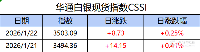 华通白银现货指数CSSI走势日报,今日指数3503.09,日涨跌+8.73,日涨跌幅+0.25%