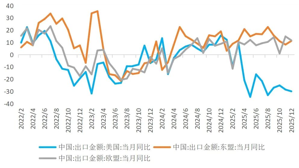 数据来源:wind,广开首席产研院 变局三:全球贸易环境弱势修复 2025年,特朗普政府以“美国优先”和“公平贸易”为由,贸然对全球多国实施“对等关税”政策,引发了多国的报复性反制措施,对全球贸易环境造成了重大和深层次的冲击。2025年下半年以来,在各种平衡力量的制约下,全球贸易环境出现了局部修复迹象。2026年这一修复进程有望延续并加快。 全球贸易环境结构性修复。一是美国被迫务实调整激进的贸易保护措施。特朗普政府出于国内通胀反弹、选举政治考量、司法裁决及供应链安全等现实需要的考虑,对外贸易策略出现了一定的战术性回调与务实调整,如2025年下半年逐步降低了部分新兴经济体的关税税率;通过多轮高层磋商达成共识,与中国缓和经贸关系,同意将现有关税及出口管制措施暂缓执行。2026年,美国不太可能再次发起大规模的关税战,并有可能根据国内市场需要逐步撤回一些贸易保护措施或降低其力度。二是多边和区域合作走向深化。除CPTPP不断扩容外,中国与共建“一带一路”国家开展更高水平的开放合作,金砖国家加快推动“本币结算+贸易便利化”落地,欧盟与南方共同市场、欧盟与印度等自贸协定的谈判将持续推进。这些多边和区域战略合作和贸易协定的签署和实施,将进一步促进区域间的贸易自由化和便利化,将为全球贸易增长提供新的动能。三是“南南贸易”的重要性进一步凸显。新兴经济体在资源禀赋、产业结构上互补性较强,都有通过“南南贸易”降低对发达市场依赖的共同需要;相较于发达国家主导的贸易规则体系,“南南贸易”更注重灵活性与务实性,在现有WTO框架下更容易达成低门槛、高包容性的贸易安排。根据联合国贸发会议等机构预测,2025年“南南贸易”增速将达到8%,显著高于全球贸易平均水平。预计这一趋势将在2026年得到进一步强化,继续成为全球贸易增长的“正面支撑力量”。 全球贸易仍可能面临新的“破坏性力量”。一方面,欧洲等发达经济体有可能成为贸易保护主义的新策源地。2025年底,作为欧元区双引擎之一的法国多次公开表示,欧洲对华贸易逆差不能再持续下去,但又强调对中国加征关税或实行配额是一种“非合作性”的应对方式。因此,与美国的“关税型”壁垒不同,欧洲更倾向于“规则型”壁垒,即通过制定复杂的技术标准、环境要求、社会责任规范、数据治理规则等国内法规或区域性制度安排,包括《碳边境调节机制》《工业脱碳加速器法案》《企业可持续发展尽职调查指令》《通用数据保护条例》《数字服务法》《外国补贴条例》等,对进口产品或服务设置隐性准入门槛。其中,《碳边境调节机制》(CBAM)已于2026年初正式生效。这类壁垒表面中立合法,实则可能对新兴经济体出口形成系统性障碍。 另一方面,一些新兴经济体也可能因外部压力或自身利益倒向贸易保护主义。如墨西哥已明确宣布从自2026年元旦起对多个亚洲国家的部分产品征收5%—50%关税。印度、土耳其及部分东盟成员国也表达了2026年“优先保护本土制造业”的倾向,有可能在钢铁、汽车制造、家电、机械、纺织、农产品等领域针对性提高关税,叠加区域和双边贸易协定中的排他性条款,导致贸易规则碎片化趋势加剧,对全球产业链供应链的安全和稳定构成挑战。