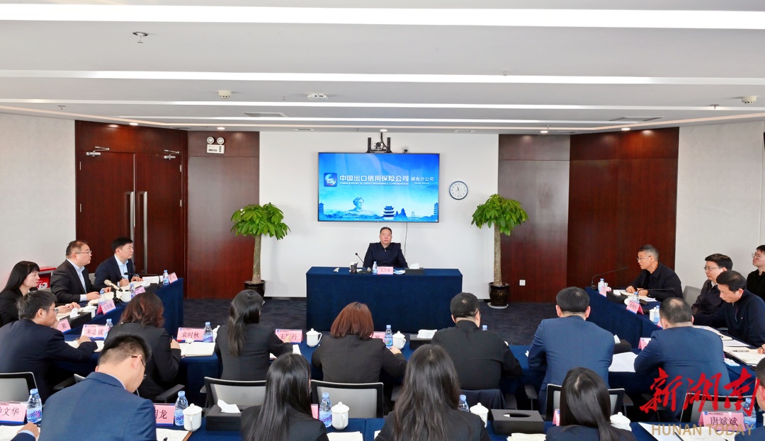 毛万春在中国出口信用保险公司湖南分公司主持召开座谈会。