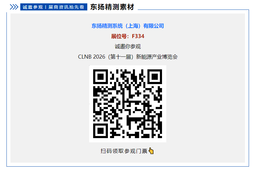 CLNB 2026(第十一届)新能源产业博览会定于2026年4月8日-10日在苏州国际博览中心隆重举办。 本届展会由上海有色网信息科技股份有限公司(SMM)主办,将全面覆盖动力电池、储能系统、上游原料、先进材料、智能制造装备、矿业资源及电池循环再生等新能源全产业链环节,为您呈现升级版的一站式产业交流与采购平台。 在CLNB 2026(第十一届)新能源产业博览会上,东扬精测系统(上海)有限公司将盛装出席, 与全球新能源行业同仁共探技术前沿、共商合作机遇,携手描绘绿色能源的未来新蓝图。