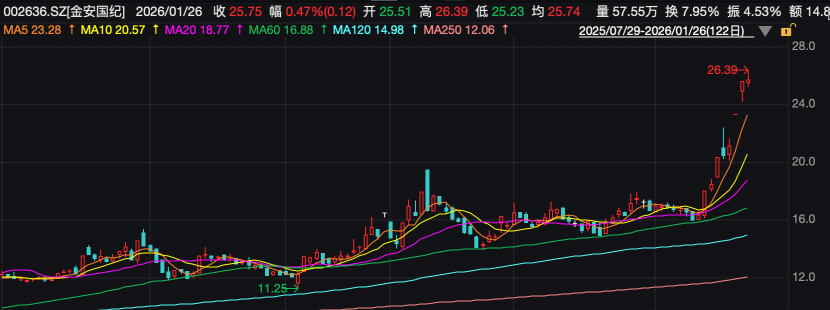 奥特维上周五(1月23日)晚间发布公告称,近期资本市场对“太空光伏”等概念关注度较高,相关板块市场表现较为活跃。目前“太空光伏”尚处初期探索和研发阶段,产业化进程仍面临较大不确定性。产品研发到商业化应用仍需要一定周期,相关预期性利好对公司实际经营业绩的影响具有较大不确定性,请投资者注意理性判断。 奥特维称,公司主营产品主要应用于地面光伏领域,主营产品应用场景未发生重大变化。2025年光伏行业仍处于持续深度调整过程中,公司2025年光伏设备业务受到光伏行业深度调整影响较大。公司还表示,公司股价短期波动幅度较大,特别提醒广大投资者,注意投资风险、理性决策、审慎投资。 金安国纪今天上午继续上行,2026年以来,公司股价涨幅已经超过50%。
