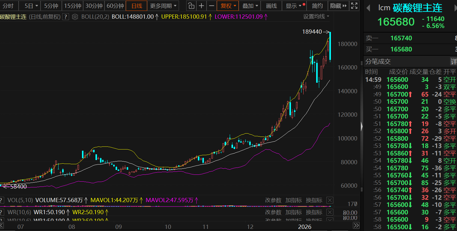 》点击查看SMM数据库数据 在碳酸锂期货价格波动剧烈而现货价格高企的情况下,现货市场表现如何呢? 据SMM今日最新了解,从市场实际成交看,上午碳酸锂期货价格相对高位时,上游散单出货意愿有所增强,但伴随着后续价格快速下跌,上游锂盐厂惜售情绪逐渐增强;下游材料厂维持按需采购节奏,并开始为二月生产备库,在早盘价格高位时下游持谨慎观望态度,随着价格一路震荡快速下跌,部分厂家散单采购意愿有所上升。整体而言,市场询价与成交活跃度较前期有所提高。 后续需持续关注市场消息对锂价的扰动,以及供应端锂盐厂的检修调整和下游生产计划,警惕期货市场情绪消退后,碳酸锂期货高位回调的风险。 机构评论 广州期货表示,2025年12月,我国锂辉石进口总量约78.85万吨,环比增加8.09%。2025年12月我国碳酸锂进口量约23989吨,环比增8.77%,同比减14.43%。需求乐观预期持续,磷酸铁锂维持去库,下游储能需求保持支撑。围绕资源端供应节奏变化的情绪面因素发酵,具体项目生产计划安排以企业公告为准,建议审慎评估市场信息。盘面情绪相对乐观,暂偏强看待,多空博弈期间预期反复调整,也需留意技术性回调风险。 金瑞期货表示,上周江西宜春矿证扰动引发供给担忧,市场情绪高涨,刺激盘面价格大幅上涨;同时2月冶炼企业检修预期释放,1-2月平衡有望延续去库,强于月初市场预期。展望后市,价格存在受消息刺激进一步上涨的可能性,一季度碳酸锂价格预计偏强运行。同时目前锂价估值已处高位,价格波动剧烈,建议投资者谨慎操作,注意交易所监管趋严、限仓冷却情绪的风险。 五矿期货评价称,当前电池“抢出口”对淡季需求形成支撑,锂盐厂检修国内产量见短期高点,SMM国内碳酸锂库存继续下降。短期矿端扰动偏多,供给不确定性强,商品市场整体波动较大,锂价急速上涨隐藏回调风险,建议观望或轻仓尝试。关注市场氛围、需求政策、下游接货意愿和盘面持仓变化。 南华期货分析指出,广期所新增碳酸锂期货注册品牌,有利于降低企业交割成本,预计后市碳酸锂现货的基差将进一步走强,同时可能会使合约之间的月差有所缩小。现货端,春节前夕碳酸锂现货采购需求旺盛,市场将呈现“淡季不淡”的运行特征。与此同时,近期下游企业补库意愿升温、补库力度逐步显现。期货端,盘面在完成前期缺口回补后,呈现震荡上行态势。策略层面,2月上旬前仍建议把握回调机会逢低布局碳酸锂多单。需注意的是,春节长假期间不确定性因素较多,因此建议在春节前夕逐步降低仓位,以轻仓或空仓状态过节,规避长假持仓风险。 |