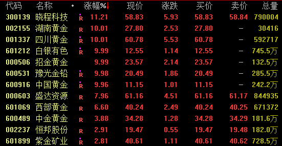 中信证券表示,在AI产业持续高景气的背景下,光互联正在逐渐替代铜连接,成为实现高性能、高带宽、低延迟AI网络的关键。其中Scaleup层面作为新兴光模块市场,技术处于高速迭代阶段,NPO、CPO等方案同步演进,长期看CPO仍为产业大趋势,但短期受制于产业成熟度等因素,NPO逐步成为下一代落地应用的主战场。在技术快速演进的过程中,行业龙头依托技术积淀与创新能力,将持续巩固技术领先优势并引领产业升级方向,重点推荐国内外光通信龙头。 黄金股强势 部分黄金股27日仍延续强势,白银有色涨停,斩获6连板;四川黄金、中国黄金、豫光金铅等连续3日涨停,招金黄金近7日累计涨超60%。