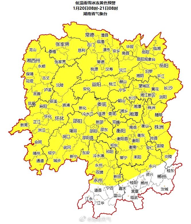 据湖南省气象台,19日9时至20日9时,湘中以北大部分地区出现冻雨、冰粒或纯雪,其中益