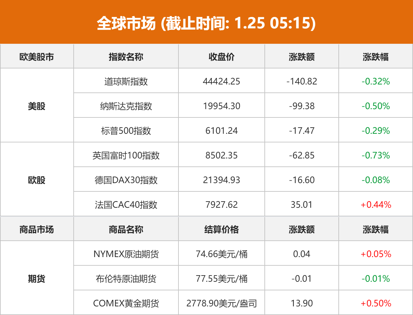 全球要闻特朗普加征关税在即:美国消费者信心六个月来首降 通胀预期恶化 由于担忧特朗普推进激进的关税计划,美国1月份消费者信心六个月来首次下滑,且通胀预期出现明显恶化。美国密歇根大学周五公布的数据显示,美国1月消费者信心指数下降至71.1,低于预期的73.2,表明在新政府即将就职之际,人们更多持怀疑态度。 美国可再生能源巨头颠覆行业 竟布局天然气与核能发电 可再生能源行业的领导者NextEra Energy(股票代码:NEE)正寻求扩大公司天然气和核能发电的业务,以满足人工智能可能带来的电力需求。 最新爆料:苹果调动善战老将整顿AI业务 期盼能打翻身仗 知名科技爆料人马克·古尔曼周五表示,面对AI项目的现状,苹果公司决定先从人事问题下手。知情人士透露,擅长整顿“问题产品”和推动重大项目上市的项目管理副总裁金·沃拉斯(Kim Vorrath),在本周调动至苹果的人工智能和机器学习部门,成为AI业务负责人约翰·贾尼安德里亚的高级副手。 特朗普敦促降低油价 欧佩克+回应:符合现有增产计划 据媒体报道,针对美国总统唐纳德·特朗普要求降低油价的呼吁,欧佩克+代表回应称,该联盟已有计划从2025年4月起逐步增加石油产量。 页岩油高管敲警钟:特朗普能源繁荣梦或难敌华尔街冷眼 页岩油老板们警告称,美国总统特朗普数次呼吁的石油繁荣可能会受挫,因为华尔街金主们不愿意在油价较低的时候批准增加供应。咨询公司Rystad Energy和Wood Mackenzie表示,在特朗普的第二任期,美国石油总产量将每天增加不到130万桶,低于拜登政府期间每天190万桶的涨幅,也低于页岩油繁荣时期。 硅谷AI军备竞赛继续升温!Meta宣布资本支出激增至超600亿美元 美国科技巨头Meta公司的首席执行官马克·扎克伯格周五宣布,公司今年的资本支出将达到600-650亿美元的规模,狠狠押注AI领域。 |