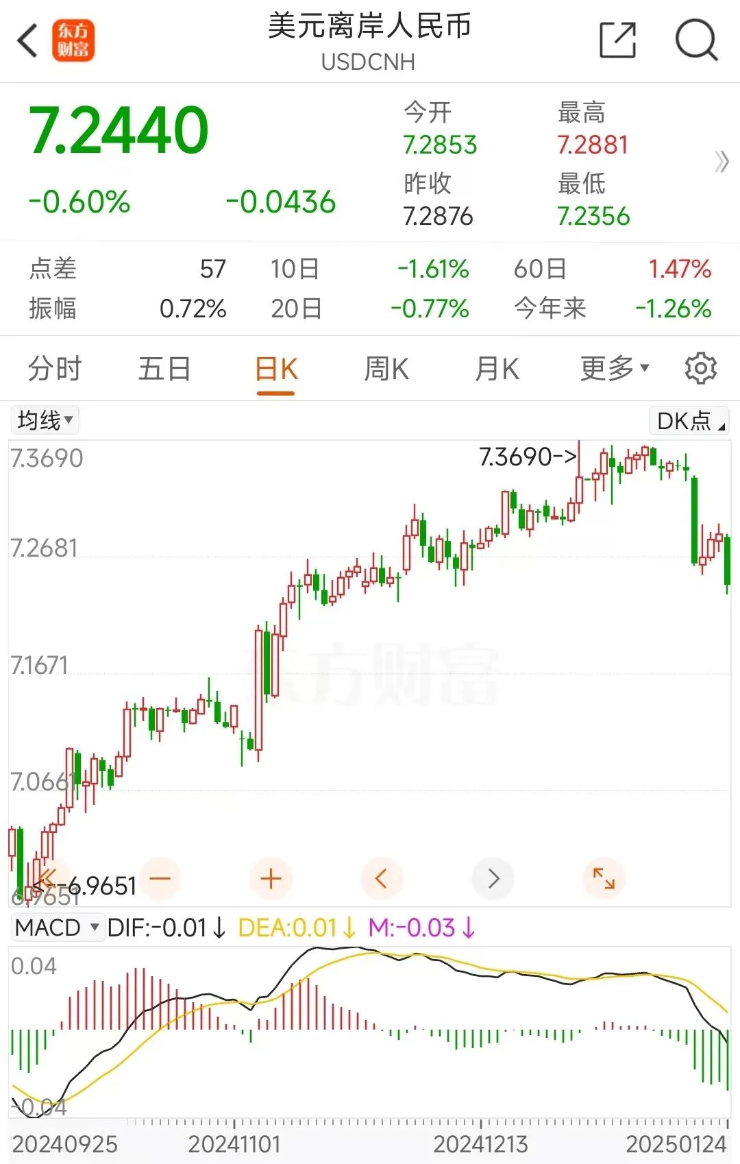 周五美股三大指数在盘初震荡走强,标普500一度刷出历史新高。此后三大指数震荡走低,收盘时道琼斯跌0.32%,纳斯达克跌0.5%,标普500跌0.29%。 ![]() 01 中国资产逆势大涨 虽说美股三大指数集体走低,但周五美股中国资产却逆势走强,纳斯达克中国金龙指数大涨250.08点,涨幅3.72%。 中概股指数周五大涨4.25%,创下2024年12月10日以来最大单日跌幅。近8个交易日,中概股指数“7阳1阴”,累计涨幅11.8%。 ![]() 热门中概股多数走强,金山云涨13.1%,爱奇艺涨11.5%,拼多多涨7.05%,好未来涨5.6%,京东涨5.22%,携程涨5.18%,腾讯音乐涨4.89%,百度涨4.64%,蔚来涨3.87%,阿里巴巴涨3.53%,小鹏汽车涨3.09%,理想汽车涨1.84%。 ![]() 02 2025年人民币暴涨1250点 对于美股中国资产的强势,有业内人士表示,与当天人民币的大幅升值密切相关。周五离岸人民币兑美元盘中一度大涨超500个基点突破7.24,创下近两个月以来新高。收盘时,离岸人民币报7.244,上涨436个基点。 2024年12月31日,离岸人民币兑美元一度触及7.369。按此计算,2025年以来人民币已暴涨1250点。 ![]() 03 A股、港股周五走强 还有投资人士表示,周五中概股的强势,也在一定程度上受到周五A股、港股走强的带动。周五A股三大指数集体上涨,其中沪指涨0.7%,深成指涨1.15%,创业板指涨1.36%。港股方面,恒生指数周五大涨1.86%,恒生科技指数大涨3.15%。 拉长时间看,A股、港股周K线均实现两连涨。沪指累涨2.65%,深成指累涨5.07%,创业板指累涨7.42%,恒生指数累涨5.26%,恒生科技指数累涨9.31%。 1月23日,在国新办举行的新闻发布会上,证监会主席吴清表示,中央金融办、证监会等六部委联合印发的《关于推动中长期资金入市工作的实施方案》,聚焦公募基金、商业保险资金、养老金等中长期资金入市的卡点堵点问题,提出了一系列的更加具体的举措。 明确公募基金持有A股流通市值未来三年每年至少增长10%。对商业保险资金,力争大型国有保险公司从2025年起每年新增保费的30%用于投资A股,这也意味着将每年至少为A股新增几千亿的长期资金。第二批保险资金的长期股票投资试点将在2025年上半年落实到位,规模不低于1000亿元,后续还将逐步扩大。其中500亿元资金将在春节前先期到位并投资股市。 中国资产的大涨,据中国基金报报道,还与美国总统特朗普的最新表态有关。特朗普近日在接受采访时,似乎对中国关税的立场有所缓和,称“宁愿不对中国加征关税”。 04 中国资产吸引力上升? 展望后市,不少机构纷纷看好中国资产前景。瑞银资产管理全球投资总监巴里·吉尔(Barry Gill)在评论全球分散投资的趋势以及中国在投资组合中的作用时称:“中国是我的首选,这是目前全球最便宜的股票市场。无论是政策刺激还是企业的资本配置决策等,中国从许多方面都有潜力给投资者带来惊喜。” 高盛、摩根大通等知名投资机构在此前也纷纷发布研报,上调中国资产评级,看好2025年中国资本市场。外资机构普遍认为,2025年企业盈利复苏将为中国市场的上行提供支撑,增量资金有望持续涌入。 中信证券总经理邹迎光表示,对于资本市场而言,中长期资金入市能更好发挥维护市场健康运行的“压舱石”作用。当前个人投资者持有A股流通市值的比重超过30%,相比之下,社保、险资、公募等中长期资金持有的比重不到20%,距离美国市场57%的机构化水平仍有较大差距。推动中长期资金持续入市,一方面能显著优化A股市场的投资者结构,逐步树立价值投资与长期投资理念;另一方面也能为市场提供源源不断的增量资金,在有效提振投资者信心的同时,为A股长牛提供有力支撑。 (文章来源:东方财富研究中心) |