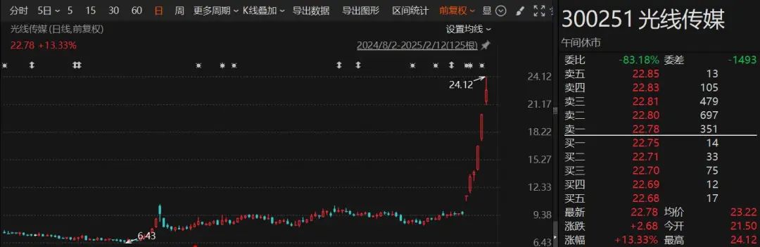 除DeepSeek外,影片《哪吒之魔童闹海》(简称《哪吒2》)也是春节后A股市场最火爆的概念之一,《哪吒2》的票房近期每日都在刷新中国票房历史纪录。 据灯塔专业版,截至2月11日19时03分,影片《哪吒2》总票房(含预售)突破90亿元,成为全球影史第27部票房超过90亿元的影片,打破90亿元票房俱乐部好莱坞影片垄断,超过《钢铁侠3》《美女与野兽》,进入全球影史票房榜前24名,即将超越《冰雪奇缘》。 对《哪吒2》票房最终预测也一升再升,2月1日,灯塔专业版《哪吒2》预测总票房仅61.16亿元,经过连续14天上涨后,灯塔专业版《哪吒2》总票房预测已达151.33亿元。 作为发行方的光线传媒业绩预测也是一涨再涨。2月5日,光线传媒公告,截至2025年2月4日,公司来源于《哪吒2》影片的营业收入区间约为9.5亿元—10.1亿元。 而光大证券最新研报预测,考虑《哪吒2》票房大超预期,预计增厚业绩,上修光线传媒2025年归母净利润至17.32亿元(较上次预测增加47%)。 光线传媒昨日晚间再发股价异动公告,公司股票交易连续2个交易日内收盘价格涨幅偏离值累计超过30%,同时连续5个交易日内收盘价格涨幅偏离值累计超过100%,属于股票交易异常波动及严重异常波动情形。经核实,公司及子公司出品、发行的影片《哪吒之魔童闹海》正在热映中。 中原证券表示,2025年春节档打破去年第二季度以来电影市场的长期低迷,量价齐升推动档期票房大幅刷新票房和观影人次的最高纪录,也进一步说明了电影市场供给驱动需求的特征明显。优质影片的上映不仅能够有效带动大量的观影需求,观众的流入还能够带动卖品、映前广告等高毛利非票业务的旺盛,改善影院收入结构,提升影院盈利能力,为行业发展注入信心。 校对:冉燕青 |