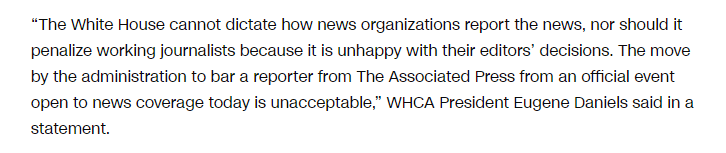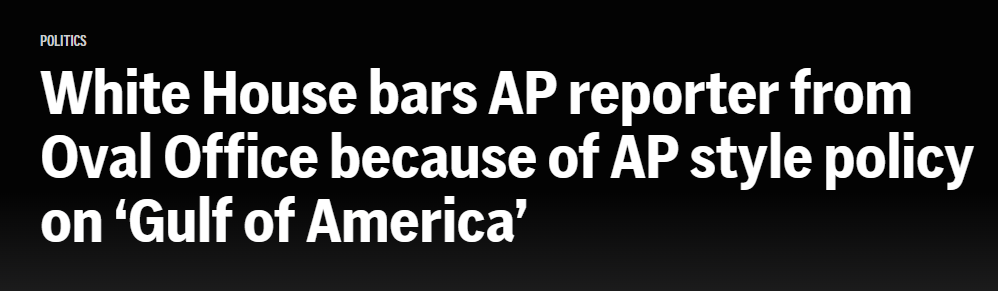 △美联社称,白宫禁止美联社记者进入总统办公室。 美联社称其11日当天被告知,如果该社不将编辑标准与特朗普总统将“墨西哥湾”重新命名为“美国湾”的行政命令保持一致,美联社将被禁止参与白宫总统办公室的活动。