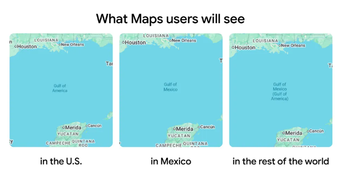 特朗普于1月20日就职当天签署行政令,将“墨西哥湾”更名为“美国湾”。美联社23日表示,特朗普签署的行政令只在美国国内有效力,墨西哥以及其他国家和国际机构不必承认此更名。 该通讯社表示,“‘墨西哥湾’这个名字已经沿用了400多年,美联社将沿用原名称,同时承认特朗普选择的新名称。但作为全球性通讯社,美联社必须确保所有观众都能轻松识别地名和地理位置。” 谷歌地图: 不同地理位置将看到不同名字 谷歌公司近日就“墨西哥湾更名”一事对其地图进行了调整。另据美联社报道,苹果公司于2月11日将其地图应用中的“墨西哥湾”更名为“美国湾”。