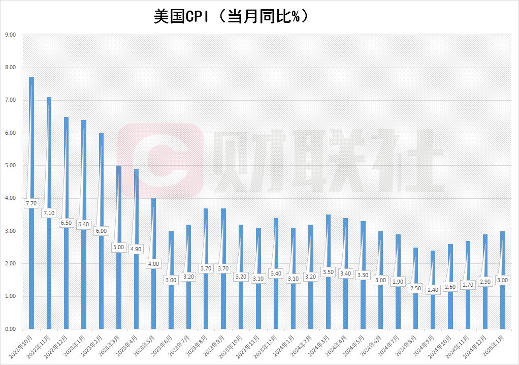 美国1月CPI同比增长3%,预估为增长2.9%,前值为增长2.9%;1月CPI环比增长0.5%,预估为增长0.3%,前值为增长0.4%。