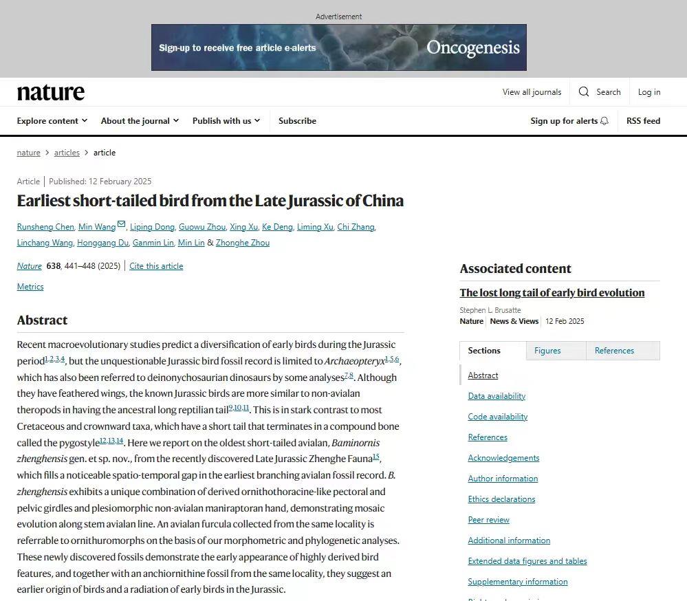 今天(13日),中国科学院古脊椎动物与古人类研究所与福建省地质调查研究院联合发布最新研究成果:通过对福建省政和动物群发现的侏罗纪鸟类化石的研究,发现全球最古老的鸟类之一,也是迄今唯一确切的侏罗纪鸟类,揭示了现代鸟类的体型结构在侏罗纪晚期(距今1.5亿年)就已经出现,该研究将以尾综骨为代表的鸟类重要特征出现的时间提早了近2000万年。相关研究成果北京时间2月13日在《自然》发表。