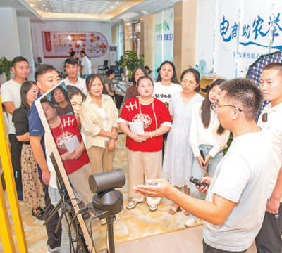 江苏宿迁市宿豫区下相街道党工委工作人员在为新就业群体开展电商直播培训。 徐江海摄(影像中国)