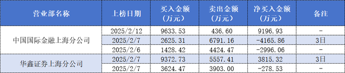 在拓维信息这场6连板的盛宴中,量化基金也没有缺席。 2月6日,量化基金常用席位中国国际金融上海分公司出现在拓维信息卖方第三位,买入金额为1428.42万元,卖出金额为4424.47万元;次日披露的3日龙虎榜数据显示,上述席位买入金额为2625.31万元,卖出金额为6791.16万元;2月12日该席位又以高达9633.53万元的买入额出现在拓维信息买方第五位,同时小幅卖出436.6万元。 另一个量化基金常用席位华鑫证券上海分公司则是在2月7日出现在拓维信息卖方第五位,买入金额为3624.47万元,卖出金额为3903万元;同日披露的3日龙虎榜数据显示,该席位的买入金额为9372.73万元,卖出金额为5557.41万元。