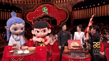 2025年总台元宵晚会电视端和新媒体端各项观看数据 较 去年均有大幅提升 。 据统计,元宵晚会跨媒体直播总触达人次为4.59亿次 ,比去年提升了30% 。电视端观众收看人次1.89亿 次 ,比去年提升12% ;新媒体端直播播放量2.7亿次 ,比去年提升47% 。全国超100 座 城市的1500块 大屏通过“百城千屏”传播矩阵对晚会进行8K超高清直播。 海外传播方面,CGTN(中国国际电视台)以82种 语言宣传报道总台元宵晚会相关内容,国际视频通讯社向全球媒体推送元宵晚会精彩视频。俄罗斯大亚洲电视台、美国第二大西班牙语电视网Telemundo、英国ALBUK电视台、匈牙利国家电视台、巴西《伯南布哥日报》、布隆迪国家通讯社、印度亚洲新闻社、法国21世纪战略家网站、日本Record China网站等多家海外主流媒体播发转载相关报道。总台元宵晚会宣传片和海报陆续登陆德国、意大利、俄罗斯、秘鲁、肯尼亚、南非、埃及、沙特、阿联酋等1 6 个 国家和地区,以及香港、澳门地区的1884块 公共大屏,让全球受众一同感受中国元宵佳节的喜庆氛围和万家团圆的美好景象。 今年春节档,国产动画电影《哪吒之魔童闹海》连创多项票房纪录,强势登陆北美等海外院线。“百亿票房男主”哪吒和敖丙人偶“大闹”元宵晚会舞台,大张伟与哪吒配音演员吕艳婷欢乐开唱《哪吒闹元宵》点燃全场,一句自信桀骜的“我命由我不由天”,将“闹元宵”的热烈氛围推向高潮。