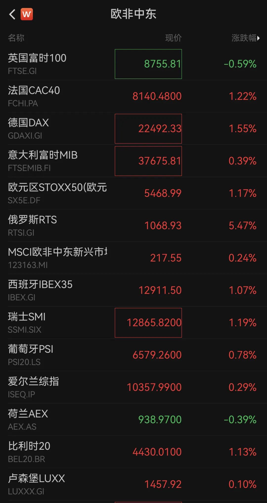 值得一提的是,俄罗斯RTS指数自去年12月份低点(725.56点)已经反弹超40%,年内该指数也上涨了约20%。 欧洲市场方面,多国股市均上涨,其中,德国DAX指数、法国CAC40指数涨超1%。