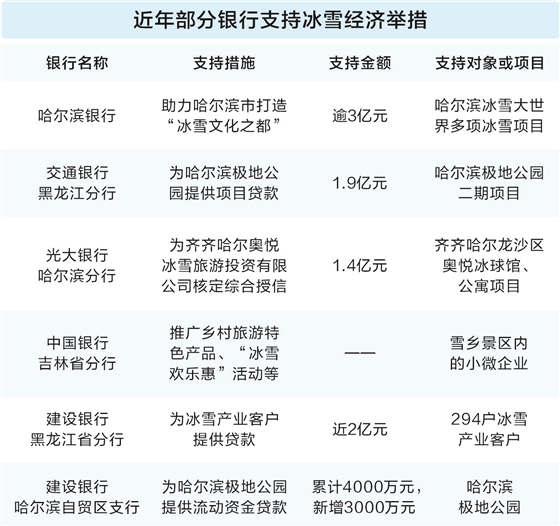 证券时报记者 李颖超 最近几日,第九届亚洲冬季运动会在哈尔滨举行。赛场之外,游人如织,掀起冰雪旅游热潮。这是近年来国内冰雪经济迅速崛起的一个缩影。 在这场冰雪盛宴中,金融作为经济引擎的关键一环,发挥着举足轻重的作用。在我国,商业银行通过全方位的金融支持,从专项信贷投放到冰雪主题信用卡的创新推出,不仅为冰雪产业搭建起发展的舞台,更为广大消费者送去温暖与便利,确保冰雪经济的热度不仅限于一时,而是能够持久续航,实现从“短暂过客”向“常驻嘉宾”的华丽转身。 “从北国雪乡的皑皑白雪到南国室内的冰雪世界,银行业正以前所未有的力度支持着这一新兴经济形态的发展。” 一位国有银行资深从业者告诉证券时报记者。 1 政策在发力 进入冬季,在第九届亚洲冬季运动会正式举办之前,人民银行黑龙江省分行、国家外汇局黑龙江省分局就已行动起来,大力提升哈尔滨市支付服务的多元化与便捷性。 在运动会开幕前,哈尔滨已实现包括即时可用的便利化支付服务、境外银行卡的无障碍刷卡体验、移动支付的扫码快速交易,以及外币与人民币的高效兑换服务等,全方位满足了境外来访者的多样化支付需求。 其实,为了充分挖掘冰雪经济的潜力,我国已将冰雪经济定位为新的增长极,全力推进冰雪运动、冰雪文化、冰雪装备产业及冰雪旅游的全链条、全方位发展。 2024年年底,中央经济工作会议明确将冰雪经济列为扩大内需的重要增长点之一,与首发经济、银发经济并列。此前,国务院办公厅2024年11月印发的《关于以冰雪运动高质量发展激发冰雪经济活力的若干意见》明确提出:到2027年,冰雪经济总规模达到1.2万亿元;到2030年,冰雪经济总规模达到1.5万亿元。 2 信贷投放精准滴灌 随着冰雪经济蓬勃发展,与之相伴的是强烈的金融需求,银行业也在积极作为,进行大力支持。证券时报记者了解到,信贷投放已成为商业银行助力冰雪产业发展的主要方式。 华东地区一位大行资深从业人士向记者透露,为有效满足冰雪产业多样化的融资需求,银行业近年来显著加大了信贷投放力度,并且不断创新相关信贷产品,力求更契合冰雪产业的特性与发展需求。 据了解,各银行已有具体行动方案。例如,农业银行明确将包括国家级滑雪旅游度假地冰雪产业在内的项目纳入重点支持领域,围绕加大信贷投放、优化准入条件、降低融资成本等方面,配套实施针对性举措。 建设银行黑龙江省分行将冰雪产业列为信贷投放的重点领域,聚焦冰雪产业链上的关键环节,如住宿餐饮、文化体育等,为不同规模的文旅企业提供定制化的金融服务方案。据了解,今冬冰雪季开始以来,该分行累计支持冰雪产业客户294户,贷款额近2亿元。 交通银行不仅为北大湖冰雪旅游项目投放3.3亿元的信贷及融资租赁支持,还与上海耀雪冰雪世界达成了冠名战略合作,为运营方提供资金支持,并为游客提供包括冰雪旅游保险、专属信用卡优惠、会员积分兑换等定制化的金融产品和服务。 股份制银行方面,浦发银行哈尔滨分行积极为冰雪文化、冰雪旅游、冰雪运动、冰雪装备制定特色金融服务方案。截至2024年12月末,该分行冰雪经济相关产业对公信贷余额2099.73万元,该年度新增投放2099.73万元,同比增长260.73万元。 3 多维度支持产业发展 在加大信贷投放的同时,商业银行还不断创新金融服务,以满足冰雪经济多元化发展的需求。不仅为冰雪产业提供所需资金,银行业还通过创新金融产品和服务,推动了冰雪经济与文旅、体育、消费等多领域的深度融合。 “这些创新服务不仅涵盖支付结算、现金管理等传统金融业务,还拓展到了消费金融、跨境金融、绿色金融等新兴领域。”华东区某股份行从业人士告诉证券时报记者。 例如,工商银行推出“燃动京城、爱购冰雪季”系列消费活动,面向北京地区的南山、军都山、石京龙滑雪场等20余家商户,在雪票、住宿、餐饮、教练教学、培训产品、冬令营等冰雪消费领域推出一站式优惠活动,有效刺激了冰雪消费市场的增长。 中国银行阿勒泰分行则为禾木景区的新能源摆渡车提供了200万元的绿色贷款,以电能替代燃油,减少碳排放。建设银行黑龙江省分行则通过创新“绿色金融+场景生态”模式,推动雪场、酒店等文旅场所节能减排,实现金融与生态的双赢。 业内人士表示,在这场冰雪嘉年华里,银行业主动出击,既在产业端提供坚实支持,又在消费端积极助力,让冰雪经济从“流星一闪”华丽转身成为“恒星长明”,为冰雪产业的持续发展注入强劲动力。 4 深化政银企平台合作 为更有效地支持冰雪经济发展,各大银行还积极深化政银企合作,搭建金融服务平台。这些平台不仅有助于畅通金融机构和各企业对接渠道,还有效破解企业“融资难”问题。 在黑龙江,多家金融机构与政府、企业携手,探索冰雪经济的发展路径。 建设银行黑龙江省分行与黑龙江文旅厅携手打造智慧旅游“一张网”,涵盖全省智慧旅游大数据中心、全域旅游市场监管平台和公共服务平台,目前“趣龙江”平台用户达到120余万户。 黑龙江本土银行哈尔滨银行在2022年就提出助力哈尔滨市打造“冰雪文化之都”,并制定了具体目标和措施,向哈尔滨冰雪大世界投放贷款逾3亿元,用于建设多项冰雪项目。 监管部门、政府层面也在积极推动政银企合作,出台了一系列支持政策。早前,人