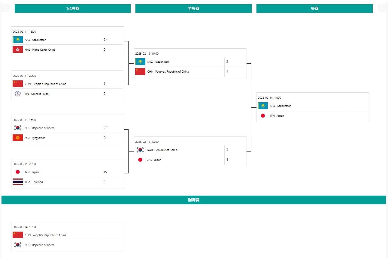 △来源:哈尔滨2025年第九届亚冬会官网,截至2月13日21时。具体比赛时间以实际为准。*女子冰球积分位次决定最终排名