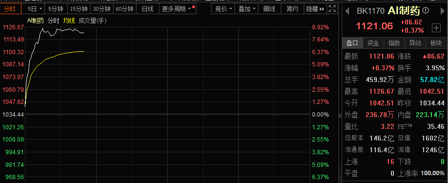 2月14日早盘,AI医疗概念股大爆发,多只个股涨停。 AI制药指数突然大涨超8%,精准医疗、AI医疗等概念股集体大涨。