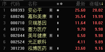 AI制药个股中,嘉和美康20%涨停;贝瑞基因、美年健康、塞力医疗等涨停。