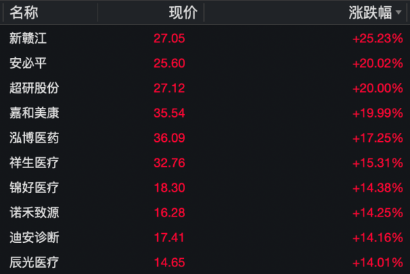科技、医疗大爆发。 A股市场上午多数指数上行,板块和个股之间分化较为明显。行业板块和赛道方面,医疗保健板块领涨,板块盘中涨幅一度逼近3%。传媒娱乐板块方面,光线传媒继续大涨,连续第5个交易日“20cm”涨停,今年2月以来光线传媒股价已经暴涨超过260%。此外,科技板块整体表现也较为强势,云计算、大数据、国产软件、DeepSeek、华为HMS等多个概念指数涨幅居前。 港股市场今天上午继续大涨,恒生指数盘中涨幅超过2%。港股科技股更是表现亮眼,恒生科技指数涨幅超3%。 医疗保健板块大涨 A股市场上午多数指数上行,板块和个股之间分化较为明显。 行业板块和赛道方面,医疗保健板块领涨,板块盘中涨幅一度逼近3%,安必平、超研股份等“20cm”涨停,祥生医疗、辰光医疗等涨幅超过10%,达安基因、贝瑞基因、美年健康等涨停。