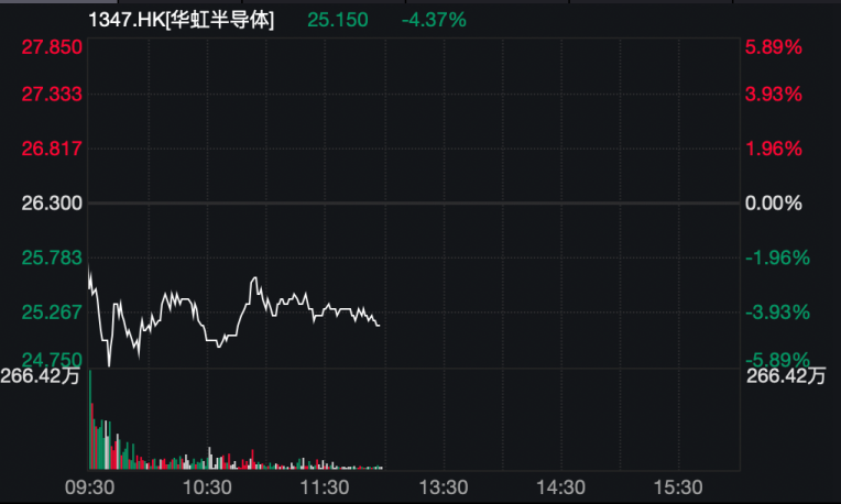 不过,华虹半导体表现疲弱,盘中跌幅一度超过5%。