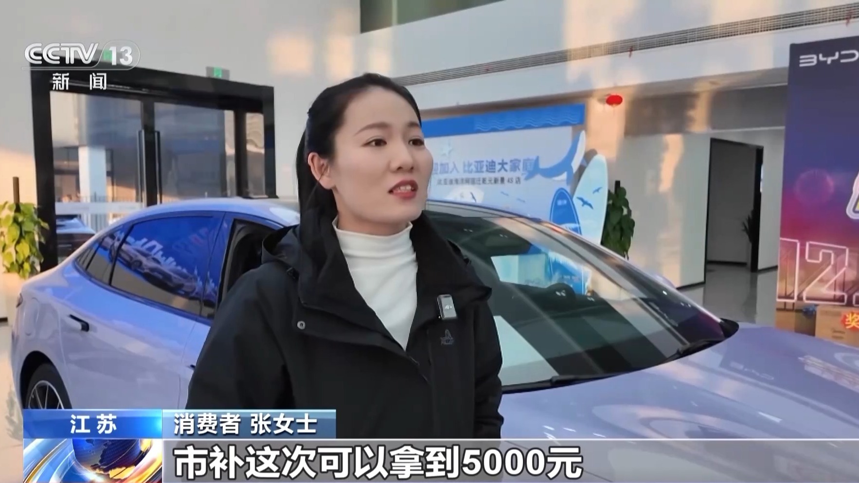 日前,《浙江省2025年汽车置换更新补贴实施细则》公布。汽车置换更新完善了补贴标准,消费者卖旧车并购买新能源汽车最高补贴1.5万元,买燃油车最高补贴1.3万元。自政策出台落地以来,浙江宁波的汽车市场成交量有了显著提升。 消费者 朱女士:去年有打算看, 这个政策一出来, 我就是加速购车时间,日程提上去了。 江苏 供需两端协同发力 延续补贴加力扩围