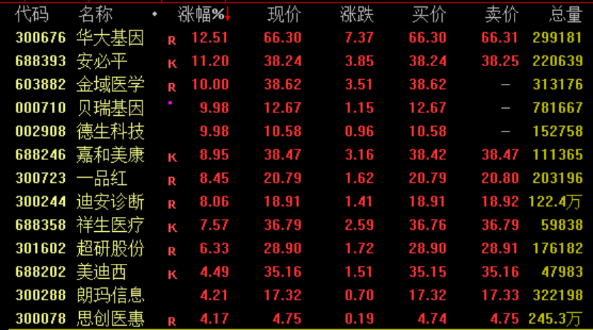 AI医疗概念拉升 AI医疗概念盘中再度拉升,截至收盘,华大基因涨超12%,安必平涨超11%,金域医学、贝瑞基因、德生科技等涨停,嘉和美康涨约9%。