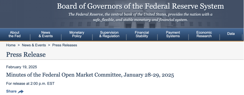 美联储最新发布的会议纪要释放重磅信号。 北京时间2月20日凌晨,美联储官网发布了2025年1月货币政策会议的纪要,其中显示,美联储官员一致认为,在降息之前需要看到通胀进一步下降。 美联储官员担心,美国总统特朗普的关税政策可能会对实现通胀目标造成不利的影响。 有分析称,本次会议纪要中最值得关注的内容,或许是关于进一步放缓或甚至暂停资产负债表缩减(QT)的讨论。彭博社指出,考虑到债务上限问题仍未解决,这一过程可能严重扰动银行体系储备水平。 与此同时,美联储官员们的最新讲话也进一步强化了“暂停降息”的市场预期。美东时间2月19日,美联储副主席杰斐逊表示,当前美国通胀率仍然略高。过去一年,美联储实现2%目标的进展缓慢,预计通胀之路将继续坎坷,美联储在考虑下一步货币政策时可以等一等。 美联储会议纪要发布 北京时间2月20日凌晨,美联储发布了2025年1月货币政策会议的纪要。纪要显示,美联储官员一致认为,在进一步降息之前,需要看到通胀继续下降,但特朗普关税等政策让通胀存在上行风险。总体来看,会议纪要并未改变市场对美联储政策走向的预期。
