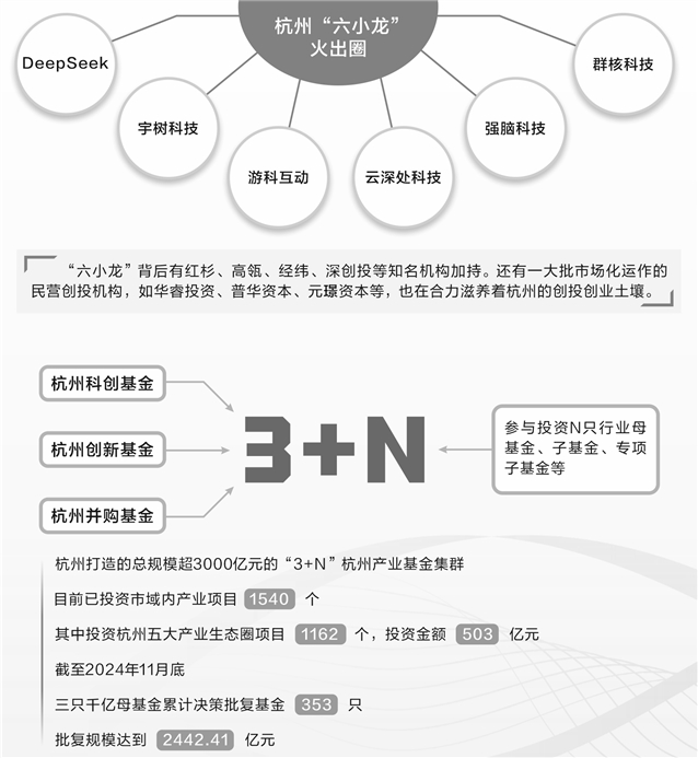 证券时报记者 李明珠 “六小龙”出圈的背后,离不开创新资本的浇灌。 杭州,这座以西湖美景闻名的城市,如今正以另一种姿态吸引着世界的目光——科技创新。以DeepSeek(深度求索)、宇树科技、游科互动、云深处科技、强脑科技、群核科技等为代表的杭州“六小龙”迅速出圈,在人工智能(AI)、机器人、脑机接口等领域展露身手,为杭州增添了科技创新的新名片。而“六小龙”成功的背后,离不开杭州这片充满活力的创新土壤,更离不开本土市场化创新资本的浇灌。 “我负责阳光雨露,你负责茁壮成长。”在接受证券时报记者采访时,杭州市创业投资协会轮值会长周恺秉用杭州投资圈中很流行的一句话来形容创新资本和创业企业的关系。这背后更深层的意义是,在杭州创业,创业者可以倾注全部心力于业务精进与创新突破上。这座城市以其包容与务实的精神,滋养着每一颗创业的种子:政府以服务为本,恪守“强服务、不干预”的原则,为企业的自由生长提供广阔空间;民营企业家们凭借敏锐的市场洞察力,引领着商业潮流;创投机构则以其“投早、投小”的前瞻性策略,为初创企业注入源源不断的动能。正是这些元素的齐力共振,造就杭州成为“创新创业新天堂”。 1 杭州成创业创新沃土 “杭州‘六小龙’火出圈后,全国各地来杭州交流拜访的政府、机构和企业数量急剧增长,我们投资的‘六小龙’之一云深处科技,正进行新一轮融资,他们一天要接待七八个参访团,想投资他们的机构有上百家,大家都想尽各种方法投进去。”赛智伯乐董事长陈斌告诉证券时报记者,“我们很早就关注到了人工智能这个方向,在考察跟踪浙大相关的实验室时,朱秋国教授对于人工智能技术长期执着的投入和独到的认知,以及对市场端的认知让我印象深刻。在云深处科技成立之后,赛智伯乐于2021年果断出资2000万元,成为了最早一批投资他们的创投基金,并参与了后续的多轮融资。” 不仅仅是云深处科技,在杭州“六小龙”成长背后,至少4家都获得过创投机构的投资,包括红杉、高瓴、经纬、顺为、深创投等知名机构。此外,赛智伯乐、道深资本、银杏谷资本等本地机构也是非常重要的支持力量。除了这些资本以外,还有一大批市场化运作的民营创投机构,如华睿投资、普华资本、元璟资本等嗅觉灵敏、敢于冒险的机构,也在合力滋养着杭州的创投创业土壤。 周恺秉总结,杭州和全国创新资本在培育“六小龙”过程中发挥了不可替代的作用。从融资历程来看,本地机构在他们发展的不同阶段给予了真金白银的支持,尤其是在这些项目的早期阶段;其次,政府基金发挥了重要的引导作用,比如杭高投引导基金参与投资的宇树科技和云深处科技,都引导了大量的民间社会资本参与其中。这种真正的扶持早期企业且坚持长期投资的做法,非常重要。 “创新土壤做好了,尽管最终不能预测哪家企业能跑出来,但是一定会出现伟大的公司和伟大的民营企业家,具体的个体有偶然性,但是这个群体的出现是有某种必然性的。”周恺秉认为,“世界上绝大部分伟大的公司,都是在创投机构比较密集的地方发展成长起来的,比如美国硅谷就是很典型的代表,在创投沙漠里不可能出现伟大的创新公司,杭州也一样。” 过去20年,杭州诞生和培育出了一系列的创新公司,其中包含一些非常伟大的公司,比如阿里系、海康威视、网易、贝达药业等,现在又有以“六小龙”为代表的新一代科技企业,还有几十家后备独角兽企业。 “杭州的创新生态其实是通过二三十年不断的积累、叠加、发酵逐渐形成,就像炒茶叶一样,不停地翻来翻去,叠加捻动,才有了现在的环境。”陈斌告诉记者,有这么多科技企业跑出来,背后的因素很多,第一,创新企业背后是市场化的创新资本在投资。杭州有一大批本土创投机构,相比北京、上海而言,规模不一定大但专业能力强,决策机制灵活,尤其是敢冒风险、执行力强。另外,杭州还有一批中国最早做LP(出资人)出身的天使投资人,现在都已成为创新资本市场上的活跃者。 第二,杭州创新生态比较好,吸引全国乃至世界各地的年轻创业者,尤其是浙江大学等本地高校培养的学生,很多年轻人毕业后就开始创业,把创业项目落地在杭州。由于创新生态好,全国很多年轻创业者都跑到杭州来,创业项目最后也带到杭州。 第三,杭州政府在支持企业发展和营造整体营商环境的构建方面做得比较到位,有事随叫随到,没事不来打扰,对企业的干扰少,整体有包容的氛围。政府的深化服务和市场的导向同向而行,整个社会的创新生态就会魅力无限,企业发展也会加快。 2 早期投资深植血脉 多维赋能企业发展 杭州的民营创投氛围浓厚,形成了“敢于冒险,乐于投早、投小”的独特文化。与其他地方的创投机构相比,杭州的创投机构更愿意投资早期项目、陪伴企业成长。同时,杭州的创投机构之间也保持着良好的合作关系,经常联合投资、共享资源,共同推动杭州科技创新生态的繁荣发展。 周恺秉分析,杭州创投有自身的特点:第一,杭州创投足够民营化,很多本地机构如华睿投资、普华资本、海邦资本等都是通过自我积累发展起来的民营投资机构;第二,杭州创投机构体量虽小,但这些机构自己也是创业者,对早期投资很敏感,对创业者的理解、把握也更好,内心的体会比一般投资人更深刻,市场化程度较高;第三,杭州创投