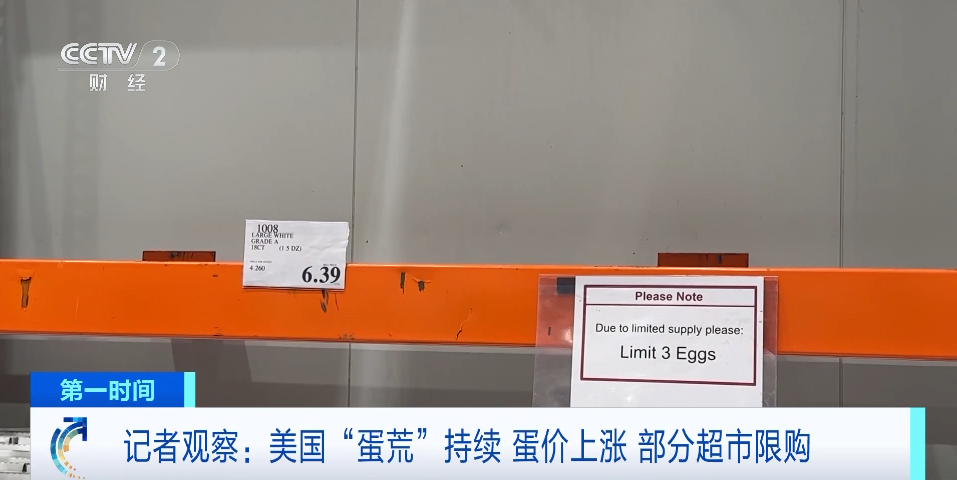 近期,由于禽流感疫情持续蔓延,美国鸡蛋平均价格已逼近历史最高水平,一些地区的供应变得紧张。 当地时间19日,本台记者走访了位于弗吉尼亚州的一家仓储式连锁超市,实地探查了一下“蛋荒”情况。 平均每个鸡蛋4.35元人民币 美国鸡蛋短缺已是近期常态 ![]() 位于弗吉尼亚州的一家大型仓储式连锁超市采取了限购的措施,每人可以购买三盒鸡蛋,目前仅有18个/盒一种规格,每盒售卖价格是6.39美元,平均每个鸡蛋折合人民币在2.5元左右,这个价格目前在美国算比较便宜了。 据美国农业部数据显示,截至当地时间2月7日,美国12个鸡蛋的平均价格为7.34美元,平均每个鸡蛋折合人民币在4.35元左右。 ![]() 在走访期间,记者发现这家超市里虽然有鸡蛋在售卖,但旁边围栏上贴着的“没有鸡蛋”的字条并未撤掉,可以看出鸡蛋短缺已经是近期常态。 美国鸡蛋价格大涨推动“母鸡租赁”服务 ![]() 在美国近期鸡蛋短缺、价格大涨的背景下,一些地区掀起“母鸡租赁”的热潮。消费者可以通过专门的母鸡租赁公司,租赁到配备好的鸡舍及母鸡。 ![]() 美国某母鸡租赁公司经理詹恩表示,大部分客户还是出于食品质量而选择租赁母鸡,虽然现在一些消费者希望用租赁母鸡的方式来缓解“蛋荒”,但初期鸡舍搭建费用平均约500美元左右,再加上每个月的鸡饲料与管理费,分摊在每月每只鸡预计能收获的鸡蛋上,价格也不低,而且同样要面对禽流感的风险。根据美国农业部的数据,预计今年美国鸡蛋价格将再飙升20%。 新闻多看点 据路透社报道,2024年美国各地有约3500万只蛋鸡因禽流感被扑杀,其中近一半发生在当年第四季度,造成近期美国蛋价飙升。 美国鸡蛋价格飙升 特朗普:和我无关怪拜登 当地时间2月16日,美国总统特朗普在回应近期美国鸡蛋价格飙升的问题时,将物价上涨的责任推给前任总统拜登。特朗普称,自己就任总统才3周时间,通胀和他没关系,“这是拜登造成的”。特朗普表示,他上个任期里几乎没有通货膨胀。 (文章来源:央视财经) |
