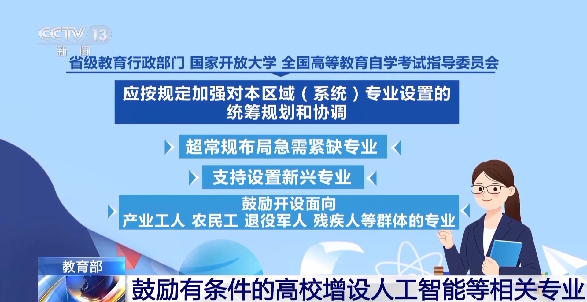 省级教育行政部门、国家开放大学、全国高等教育自学考试指导委员会应按规定加强对本区域(系统)专业设置的统筹规划和协调,超常规布局急需紧缺专业,支持设置新兴专业,鼓励开设面向产业工人、农民工、退役军人、残疾人等群体的专业。 原则上不再新增脱产形式专业点