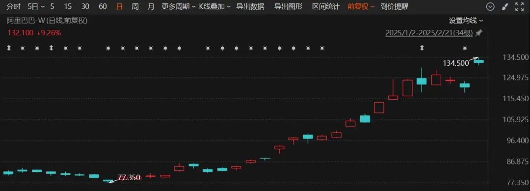 港股走强,香港恒生指数涨逾2%;恒生科技指数涨超3%。 阿里云概念股开盘大涨 阿里云概念股开盘大涨,中恒电气、浙大网新、数据港、润建股份涨停,奥飞数据涨超10%,依米康、锐捷网络、亚康股份等跟涨。 港股阿里系全线走高,阿里巴巴-SW大涨超9%,季度净利高于预期、AI投资加速。阿里健康涨超4%。