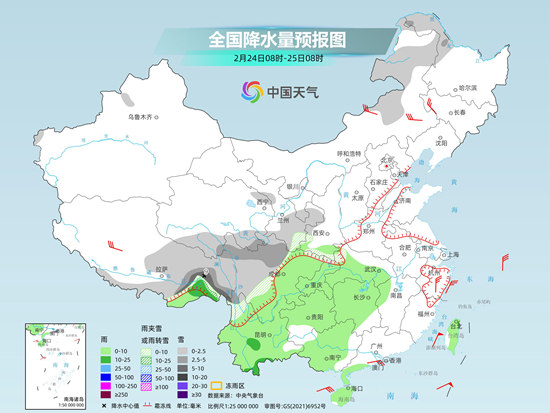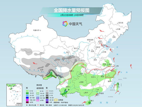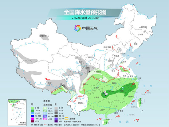周末两天(2月22日至23日),南方大范围阴雨天气持续,局地大雨;同时,青藏高原及周边部分地区降雪频繁,需注意防范。在阴雨天气和冷空气影响下,西南、江南等地周末两天气温低迷,体感湿冷,北方大部也是气温偏低。预计下周我国大部气温回升,南方多地湿冷天气将暂告一段落。 南方阴雨持续局地有大雨 西藏甘肃等地降雪频繁 今年2月中旬,西南地区到江南等地降水频繁,降水日数较常年同期偏多2至4天。昨天进入2月下旬,南方降雨暂时减少、减弱,以小雨为主,部分地区中雨;西北地区东部、西藏等地出现降雪。监测显示,21日,西藏东部、四川西北部、青海南部、甘肃东部、山西中北部、河北南部、山东北部、河南东部等地出现小雪或雨夹雪天气,甘肃定西局地中雪。湖南中北部、江西北部、四川东部、贵州南部、云南东南部、浙江中部、台湾岛北部等地出现中到大雨,海南三沙、台湾新北和宜兰局地暴雨。 周末两天,暖湿气流频频北上,南方仍将有大范围阴雨天气,同时西藏东南部、川西高原北部、甘肃南部等地多降雪天气。 具体来看,中央气象台预计,今天,甘肃中南部、青海南部和东部、川西高原东部、山西南部、湖北西北部、西藏东部和南部等地部分地区有小雪或雨夹雪,其中,西藏东部、甘肃南部等地部分地区有中雪,局地大雪。江淮西部、江汉、江南、西南地区东部、华南、海南岛、台湾岛等地部分地区有小到中雨,其中,湖南西部局地有大雨。