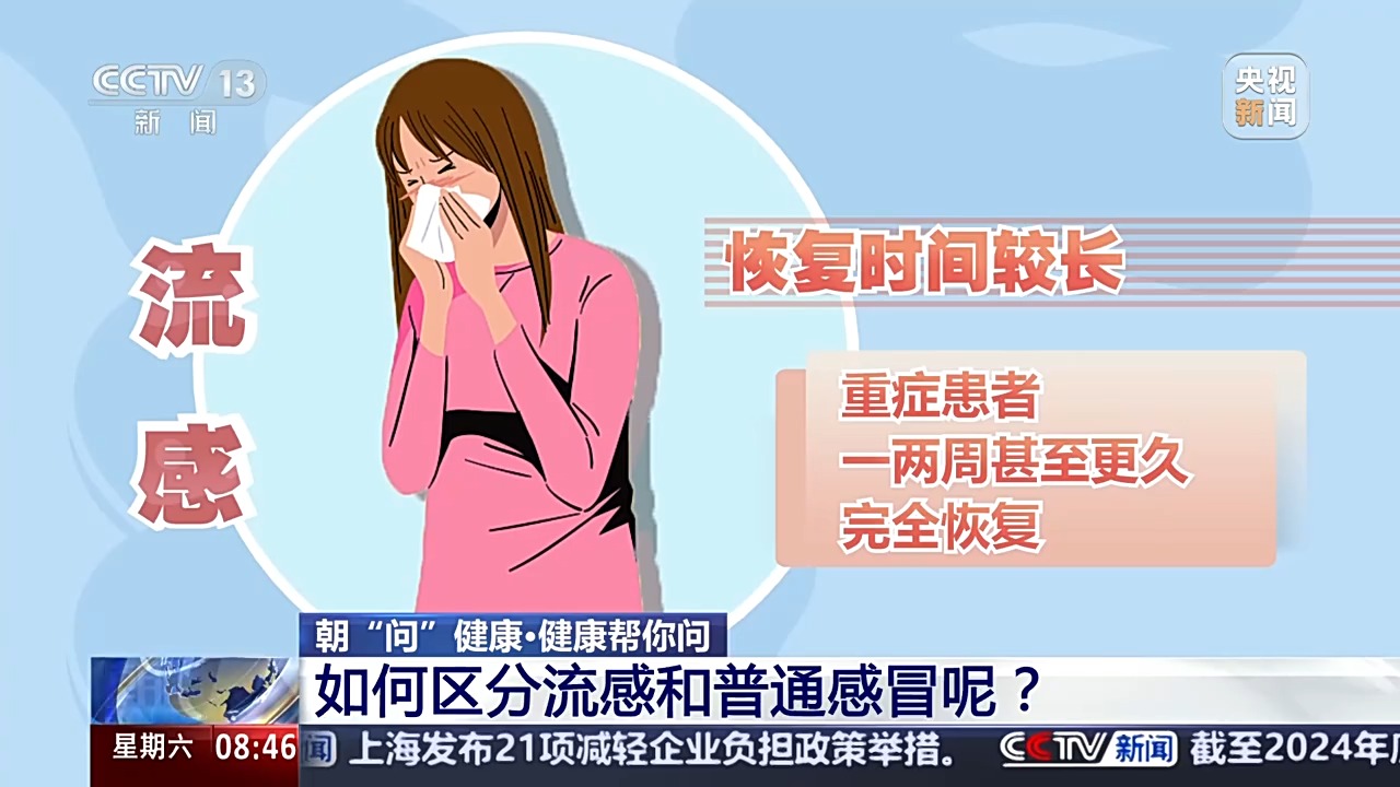 按照既往的规律,每年南方流感季进入和结束都会略晚于北方,因此目前南北方流感病毒活动水平存在差异,据了解,南方部分省份的流感流行仍在高位波动。 网传最近又发现呼吸道新病毒是真的吗? 最近网络上有传言说疑似又发现新病毒,这种病毒感染后不发烧,只流鼻涕、打喷嚏、乏力头昏。这是真的吗?中国疾控中心对此表示,未发现呼吸道相关的新发传染病,截至目前都是已知病毒。 北京大学人民医院呼吸与危重症医学科主任医师 马艳良:在这个季节可能除了我们这些常见的这种引起流感的流感病毒,还有像鼻病毒、呼吸道合胞病毒这些可以引起一些普通感冒的症状。 如何区分流感和普通感冒? 传染性不同。 流感传染性强;普通感冒传染性相对较弱。 症状不同。 流感的症状更急、更重,全身症状明显:高热38.5°C以上,全身酸痛、头痛;普通感冒的症状比较轻:流鼻涕、打喷嚏、咽痛、咳嗽,有时会有低烧,一般不会全身酸痛或极度乏力。 恢复时间不同。 流感的恢复时间较长,重症患者可能需要一两周甚至更久才能完全恢复;普通感冒通常3至7天就能好转。