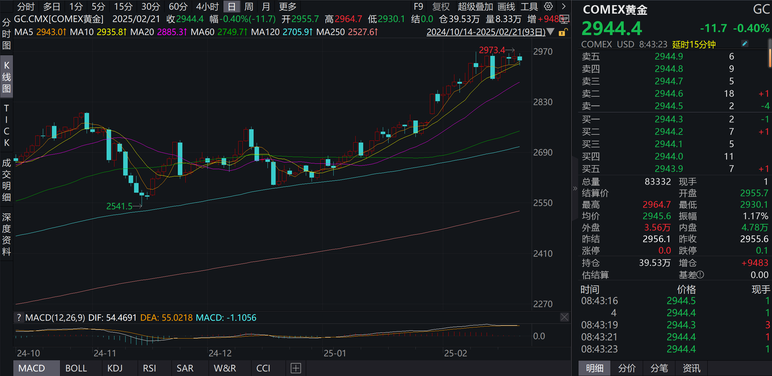截至2月21日20时,COMEX黄金期货主力合约报价徘徊在2950.6美元/盎司附近,隔夜盘中一度创下历史新高2973.4美元/盎司。随着金价迭创新高,越来越多投行纷纷力挺金价将突破3000美元/盎司。 近日,高盛、瑞银皆发布报告,预计2025年黄金高点将突破3000美元/盎司。 一位华尔街投行贵金属部人士向记者透露,相比1个月前,驱动金价上涨的幕后推手已发生明显变化——1个月前,特朗普政府对黄金进口加征关税的担忧驱动纽约黄金现货大增,推动大量黄金疯狂转运纽约与COMEX黄金期货快速飙涨;目前,美元下跌与美国贸易保护主义政策冲击全球经济增长,正触发越来越多投资机构加大避险配置力度,带动黄金价格继续迭创新高。 记者注意到,相比2月4日当周黄金生产贸易企业大幅增加173.12万盎司COMEX黄金期货期权净多头头寸并带动金价上涨,最新报告显示,推高COMEX黄金期货价格上涨的最大多头力量换成以投行为主的互换交易商。 美国商品期货交易委员会(CFTC)发布最新报告指出,截至2月11日当周,以投行为主的互换交易商持有的COMEX黄金期货期权净多头头寸较前一周增加139.82万盎司,其中空头平仓量高达170.2万盎司,成为金价继续上涨的新动能。 ![]() 互换交易商持有的COMEX黄金期货期权数据 “这与近日投行纷纷力挺金价突破3000美元/盎司有着密切关系。”上述华尔街贵金属部人士向记者指出。若金价持续上涨,投行作为互换交易商所持有的COMEX黄金期货期权空单面临更高的亏损风险,在黄金从伦敦转运黄金的等待时间相对较长(难以及时入库用于期货空单交割)的情况下,投行只能先迅速压低COMEX黄金期货空头头寸防范金价“逼空式”上涨风险。 记者了解到,2月11日当周投行意外成为COMEX黄金期货市场“最大多头力量”的另一个原因,是对冲基金开始押注黄金价格冲高回落而大幅增加COMEX黄金期货期权净空头头寸,无形间给投行(作为做市商)平仓期货空单止损创造“喘息机会”。 美元下跌与避险买盘“主导”本周黄金价格迭创新高 本周以来,推动COMEX黄金期货价格继续上涨的最重要因素,是特朗普持续推行贸易保护主义政策导致美元指数“无视”美联储放缓降息信号而持续回落,带动以美元计价的黄金价格持续上涨。 ![]() COMEX黄金期货价格行情走势 “起初,华尔街认为特朗普关税政策将利好美元,但随着特朗普对全球发出对等关税信号,加之近日特朗普又决定对半导体芯片、药品等特定商品加征关税,金融市场开始意识到特朗普一系列贸易保护主义政策也将冲击美国经济增长基本面,令美元指数回落。”一位黄金加工企业负责人向记者分析说。 受此影响,原先买涨美元指数的华尔街投资机构纷纷转向,对美元多头头寸进行大规模平仓。 2月17日,CFTC发布的最新持仓数据显示,2月11日当周,外汇市场投机客的美元净多头头寸较前一周减少47亿美元,降至265亿美元。创下去年10月以来的最大单周跌幅。 受此影响,2月11日当周,美元指数从108.44跌至106.8。截至2月21日20时,美元指数徘徊在106.66附近。 ![]() 美元指数行情走势 “美元下跌,成为本周以美元计价的黄金价格再次迭创新高的最大驱动力。”前述华尔街贵金属部人士向记者分析说。原因是美元指数下跌导致华尔街量化投资机构纷纷技术性加仓COMEX黄金期货多头头寸,博取美元下跌所带来的金价上涨新红利。相比而言,黄金从伦敦转运纽约潮对COMEX黄金期货的提振作用则有所下降。 究其原因,是本周以来COMEX黄金期货价格相比伦敦现货黄金的溢价幅度跌至15美元/盎司以内,较1月下旬的20-30美元/盎司明显缩水,令黄金贸易商将黄金现货从伦敦转运到纽约套取两地价差收益的意愿下降。此举无形间缓解了伦敦市场黄金现货短缺状况,由此带来的金价上涨势头相应减弱。 这位华尔街贵金属部人士向记者透露,目前英格兰央行提取黄金的等待时间仍需2~3周,但受纽约—伦敦黄金价差收窄影响,提取黄金转运纽约套利的黄金贸易商有所减少。 “更重要的是,是2月中旬伦敦黄金现货市场短缺状况令伦敦黄金现货价格存在明显的补涨动能,导致COMEX黄金期货在本周继续上涨期间,难以拉开与伦敦黄金现货的价差,导致黄金贸易商转运黄金的势头有所减弱。”他指出。但这意味着当前驱动金价继续上涨的最大推动力,已从黄金贸易商变成华尔街投资机构,且推动金价迭创新高的原因,也从纽约黄金市场需求旺盛,转向全球贸易保护主义抬头与美元下跌所带来的资金买盘。 对冲基金逢高沽空“失算”?全球央行与家族办公室继续加仓黄金 面对迭创新高的金价,华尔街对冲基金纷纷选择逢高沽空。 CFTC数据显示,截至2月11日单周,以对冲基金为主的资产管理机构持有的COMEX黄金期货期权净多头头寸较前一周减少146.6万盎司,其中多头平仓量达到116.24万盎司,成为当周COMEX黄金市场的“最大空头力量”。 ![]() 资产管理机构持有的COMEX黄金期货期权数据 上述华尔街贵金属部人士向记者透露,这符合华尔街对冲基金的操作惯例——只要金价创新高,他们就会习惯性削减COMEX期货净多头头寸,要么获利了结,要么押注黄金价格下跌套利。 在他看来,华尔街对冲基金之所以大举削减COMEX黄金期货期权净多头头寸,也与他们预期美元指数仍将继续走高有着密切关系。 今年2月,美国银行对全球逾50位基金经理进行的一项调查显示,在利率和货币交易员里,押注美元走强仍