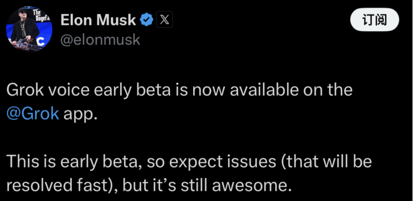 马斯克在AI方面动作不断。 今日,马斯克宣布,Grok语音模式早期测试版现已在Grok应用程序上线。Grok 3的语音模式允许用户通过自然语言与人工智能进行对话,从而实现更直观、更高效的信息获取和交互。 据马斯克此前晒出的照片,Grok应用登上美国区App Store免费应用榜首,超越了OpenAI的ChatGPT应用。xAI团队透露,目前已经启动了下一个阶段的AI集群构建,它将较目前的集群强大约5倍。 当前全球“AI大战”愈演愈烈。国内方面,随着DeepSeek-R1模型的发布与爆火,AI应用模式正迎来重要变革。继华为、荣耀等主流国产手机厂商之后,小米也正式接入DeepSeek-R1。另外,华为云、天翼云、腾讯云、阿里云、火山引擎、联通云、移动云、百度智能云等国内云计算巨头也均已接入DeepSeek。 马斯克宣布 北京时间2月23日,马斯克在社交平台X发文宣布,Grok语音模式早期测试版现已在Grok应用程序上线。“虽然这是早期测试版本,可能还会遇到一些问题(不过我们会迅速解决),但它依然非常棒。”
