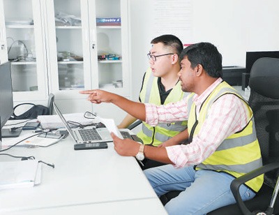 在希拉甘杰光伏电站的主控室里,中孟两国员工共同作业。 记者 刘慧摄