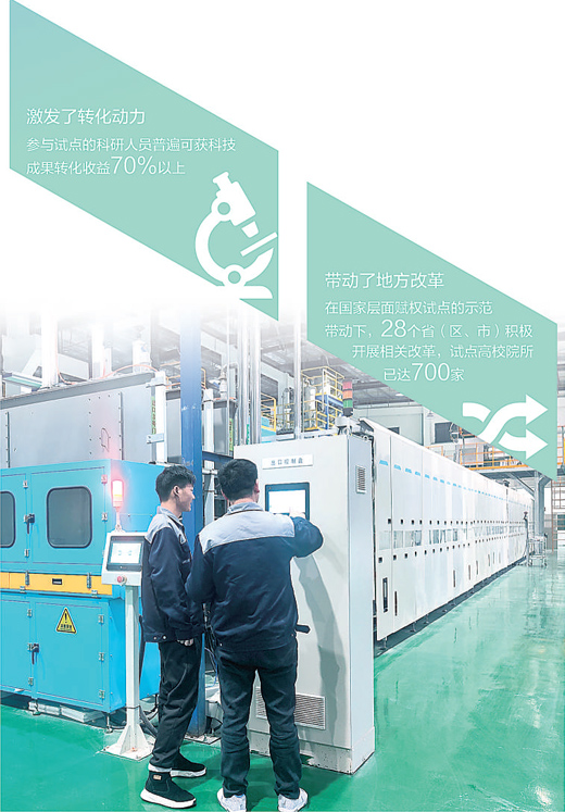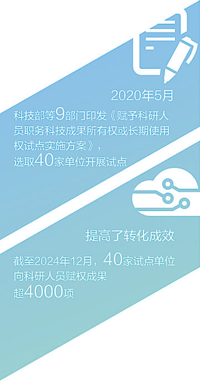 数据来源:科学技术部 党的二十届三中全会《决定》提出“深化科技成果转化机制改革”,并做出具体部署。科技成果转化是以科技创新支撑高质量发展、培育新质生产力的重要一环,是科技创新和产业创新深度融合的重要途径。 当前我国科技成果转化的态势如何?各地各部门推出哪些新举措?转化过程中还有哪些障碍有待破除?前不久,记者分赴北京、上海、安徽、湖北等地进行了探访。 ——编 者 高校院所是科技成果转化运用的主要供给方。长期以来,职务科技成果按照国有资产管理,加上转化本身存在不确定性,科研人员和相关管理者因担心被追责而“不敢转”的现象比较普遍。 近年来,以职务科技成果赋权改革为突破口,一系列改革措施落实落细,极大消除了科研人员和管理者的顾虑,科技成果转化驶上“快车道”。 赋予科研人员职务科技成果所有权或长期使用权,鼓励“放心转” 极低温是量子计算机正常运行的必备条件,安徽大学物质科学与信息技术研究院研究员王绍良带领团队在这一领域深耕多年,取得了不少成果。然而,由于职务科技成果属于国有资产,所有权和长期使用权的界定不明晰,他的论文专利一直被“冷藏”在实验室里。 2020年5月,科技部等9部门联合印发《赋予科研人员职务科技成果所有权或长期使用权试点实施方案》,选取40家单位开展试点。 2022年,安徽大学等5家省属高校成为安徽首批职务科技成果赋权试点单位;2023年,这一模式“扩面”至安徽省106家科研单位,基本实现了对省属高校和区域医疗中心的全覆盖。 王绍良团队就是这项改革的受益者。“学校将科技成果所有权通过赋权的方式,转让给成果完成团队实行转化;然后再通过协议约定,学校按照市场定价享有科技成果转化的部分收益,其余收益归科研团队。”安徽大学国内合作处副处长刘泉介绍。 2023年,经学校赋权,王绍良的相关技术成果作价1005万元,入股成立了合肥知冷低温科技有限公司。目前,该公司研发的量子计算用极低温稀释制冷机实现了产业化,国内市场占有率达到50%以上。 “以前职务科技成果所有权归属单位,无法赋权给技术发明人,影响了科研人员转化的积极性。现在,采用‘赋权+转让+约定收益’新模式,成果完全让渡给科研团队,科研人员真正成为成果的‘主人’,放手组建公司、融资,干成了很多之前想干却没法干的事。”安徽省科技厅成果处处长王聿然说。 赋权试点实施以来,40家试点单位向科研人员赋权成果超4000项。2023年,以转让、许可、作价投资三种方式转化科技成果合同金额达36.25亿元,参与试点的科研人员普遍可获科技成果转化收益70%以上。仅2023年,试点单位对科研人员的现金股权奖励就高达9.33亿元。 赋权改革就像一把钥匙,打开了科研人员的“心结”,他们“放心转”“放开转”,“锁在柜子里的科研成果”加速走向市场。 《上海市科技成果转化创新改革试点实施方案》实施以来,该市完成或正在推进的赋权成果达215项,其中全部所有权赋权83项,转化金额达11.18亿元,推动科研人员自主创业或合规整改公司达到153家,吸纳投融资额超过68亿元。其中,华东师范大学以许可、转让、作价投资三种方式赋权给科研人员,转化科技成果金额由2023年的708万元增至2024年的4.76亿元;上海理工大学首个完全赋权成果“人形机器人项目”,仅用两个月就完成上亿元融资…… 同样在北京,北京交通大学明确校内六类人员成果转化出资入股、收益分配及兼职兼薪适用情况;北京工业大学明确“先赋权后转化”的路径,成果完成人可以以“共同权属人”身份参与科技成果转化,并享有80%—90%的收益处置权…… 湖北把职务科技成果赋权改革试点扩大到全省范围,目前已完成武汉、宜昌等10个市(州)27家单位赋权改革试点备案。 据不完全统计,在国家层面赋权试点的示范带动下,28个省(区、市)积极开展相关改革,试点高校院所已达700家。 实施职务科技成果单列管理改革,探索破解“定价纠结” 不同于土地、设备等有形资产,作为无形资产的科技成果的价格很难评估。加上一直没有国家层面的科技成果评估定价操作指南和标准,科技成果转化常常因“定价纠结”而陷入停滞。 “科技成果大多属于早期项目,有的尚未中试放大,有的产业化可行性没有得到充分验证,有的成果转化对完成团队依赖性强——这些因素都会导致赋权时‘定价难’。”国家纳米科学中心相关负责人表示。 为此,该中心探索赋予科研人员职务科技成果10年长期使用权,鼓励完成人加快科技成果的研发、孵化和转化。 “我们允许科研人员带着科技成果与企业等需求方深化应用研究、产品孵化及产业化合作,探索前沿性科技成果的转化应用。”该中心相关负责人介绍,对于申请赋予职务科技成果长期使用权的,经论证制定相关转化方案,上报后即可签署赋权协议,不必再纠结当下定价多少。 杨延莲研究员就是国家纳米科学中心首批参与赋权试点的人员之一。利用功能化微球或者纳米磁珠,她带领团队实现了在人体血液、尿液等体液样本中“抓取”特定的细胞外囊泡(外泌体),寻找癌症、神经退行性疾病等病变的蛛丝马迹。10年前,她就曾尝试推进过一个项目的成果转化,结果历时3年才进入产品化阶段。这次,她带领团队只用1年多的时间,就完成了试剂盒的产品化开发。“对于初创科技企业来说,时间
