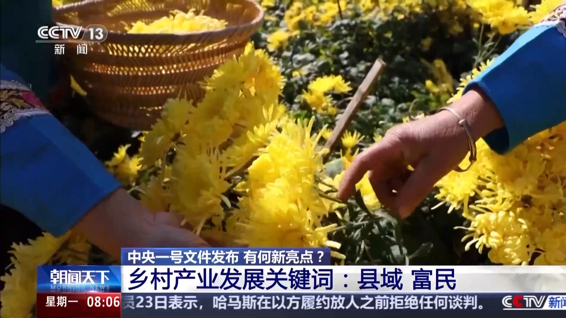 农业农村部农村经济研究中心主任金文成:今年中央一号文件特别提出要推进协同攻关,这是针对我们当前科技创新面临的一些突出问题而提出的一个重要政策。要构建一个协同攻关的这样的体制和机制,然后在整个国家农业的科技创新体系中,统筹各种力量,搭建起科技创新的平台来形成的协同推动。 乡村产业发展关键词:县域富民 今年的中央一号文件另一大亮点,是立足城乡融合来推进乡村全面振兴,提出着力壮大县域富民产业,完善联农带农机制。 专家介绍说,当前,城乡融合发展进入新阶段,县域成为推进乡村全面振兴的主战场,是推进城乡融合的载体和切入点。中央一号文件强调乡村产业发展的关键词之一就是“县域”。