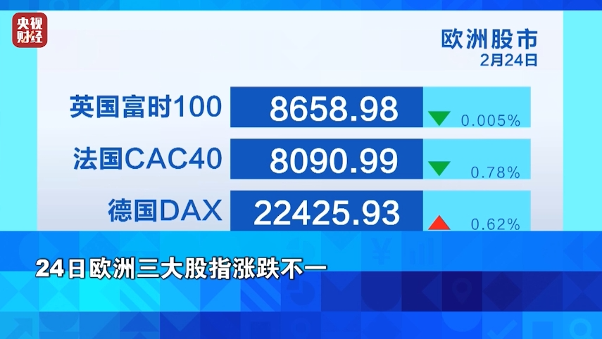 当地时间周一,美国总统特朗普表示,对墨西哥和加拿大加征关税的计划将“如期推进”,根据此前决定,加征关税措施将于3月4日生效。受关税威胁打压,市场风险偏好较弱,有关微软可能撤掉两个数据中心的报道,令投资者谨慎看待AI投资前景,美国三大股指周一涨跌不一,仅道指略微收涨。截至收盘,道指微涨0.08%,标普500指数跌0.50%,纳指跌1.21%。 24日国际金价上涨 创收盘历史新高