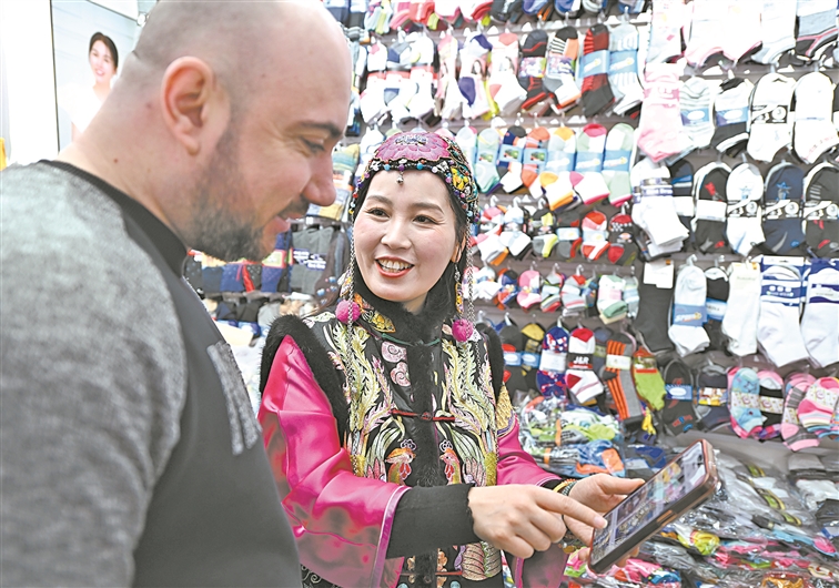 2月25日,傅江燕展示AI工具生成的多语种带货视频。近日,浙江义乌国际商贸城的经营户傅江燕在日常经营中借助DeepSeek、小商AI视创等工具,自动生成包含文案、视频画面的20多种语言的产品带货视频,货卖全球,吸引国内外订单。 中新社记者 王刚/摄