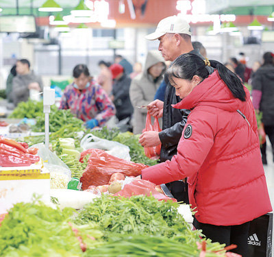 江西丰城市一家改造后的标准化菜市场,居民在选购新鲜蔬菜。 王堃摄