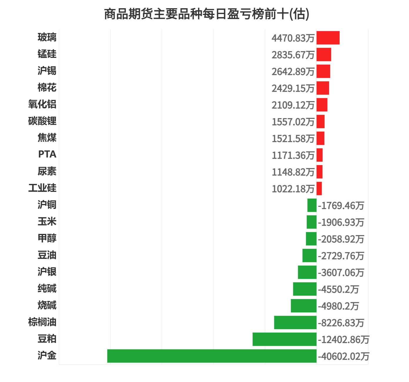 每日期货龙虎榜,带你深度了解市场。 市场一览:周四商品期货综合指数上涨0.03%,日内资金净流出8.44亿元。 市场成交量为2774.35万手,成交额为1.87万亿元。 持仓量为3606.62万手,较前一交易日增加16.23万手。 市场成交量前十和持仓量前十如下图所示: ![]() ![]() ![]() 品种盈亏榜:今日商品期货上榜机构席位中玻璃盈利第一,为4470.83万元。 沪金亏损第一,为40602.02万元。 ![]() 注:盈亏数据为对应龙虎榜持仓的估算数据。 您可通过点击东方财富期货APP资讯页面“龙虎榜”及东方财富期货PC端左侧“龙虎榜”查看各类席位持仓及盈亏榜单信息。点此查看>> ![]() ![]() 本信息来源于东方财富Choice数据,相关数据仅供参考,若数据有误,以交易所发布数据为准,不构成投资建议。 (文章来源:东方财富研究中心) |