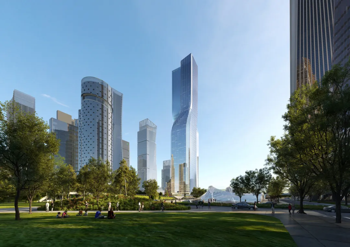 近日,兴业银行发布公告称,其深圳分行拟在深圳市南山区购置T208-0054地块的部分物业,用于深圳分行及集团内各子公司运营管理使用,购置总价不超过66亿元。 该地块位于深圳湾超级总部基地核心区域,总建筑面积约为35.51万平方米,建筑高度394.4米。此前曾是恒大集团深圳超级总部大楼的选址,却在恒大暴雷后停工烂尾,历经国资纾困、设计调整、复工代建等几番波折,如今重新回到聚光灯下,再次引发业界关注。 八年沉浮 追溯这一地块的起源,最早在2017年,恒大集团以55.52亿元底价竞得深圳湾超级总部基地T208-0054地块,计划建造394米高的“天圆地方”金色摩天大楼,总建筑面积34.3万平方米,意图打造为深圳地标性总部大厦。 彼时的恒大年销售额超5000亿元,战略转型高调推进,深圳湾项目则被市场视为其“去地产化”进军高端商务的象征。 然而,随着恒大流动性危机爆发,项目自2021年9月开始全面停工,深达42.35米的基坑因长期积水导致支护结构变形、钢筋锈蚀,成为重大安全隐患,沦为“烂尾”资产。 2022年11月,地块重新挂牌转让,深圳安和一号房地产公司以底价约75.4亿元竞得。 在安和一号接手后,项目更名为“深圳湾超级总部B塔”,建筑设计也进行了重新调整,规划升级为地上82层、400米高的复合业态超甲级写字楼。