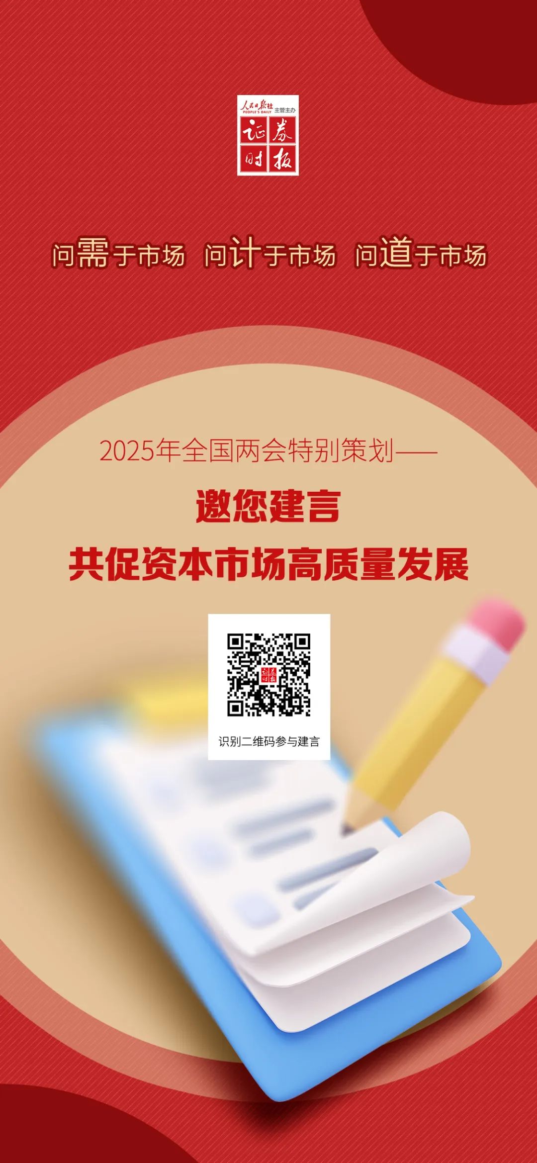 证监会主席吴清在日前的投资者座谈会上表示,将坚持问需于市场、问计于市场、问道于市场,牢牢把握中小投资者占绝大多数的基本市情,持续加强与各类投资者沟通,及时回应投资者关切,进一步推动上市公司增强回报投资者的意识和能力,不断健全投资者保护长效机制,对各类侵害投资者合法权益的违法违规行为严厉打击、一追到底,努力营造融资更规范、投资更安心的市场生态环境,推动资本市场高质量发展不断迈上新台阶。 值此2025全国两会来临之际,证券时报推出"我为资本市场高质量发展建言"特别策划,邀请上市公司、金融机构、专家学者和广大投资者,一起来出主意、解难题、谋实招,为资本市场焕发活力、行稳致远注入新动能。我们将选择部分优秀建言,与全国两会代表委员进行互动,进行公开报道,并汇总整理成专项报告,提供相关部门决策参考。 请扫描下方二维码,或点击左下角“阅读原文”参与。您的意见,我们来传递!